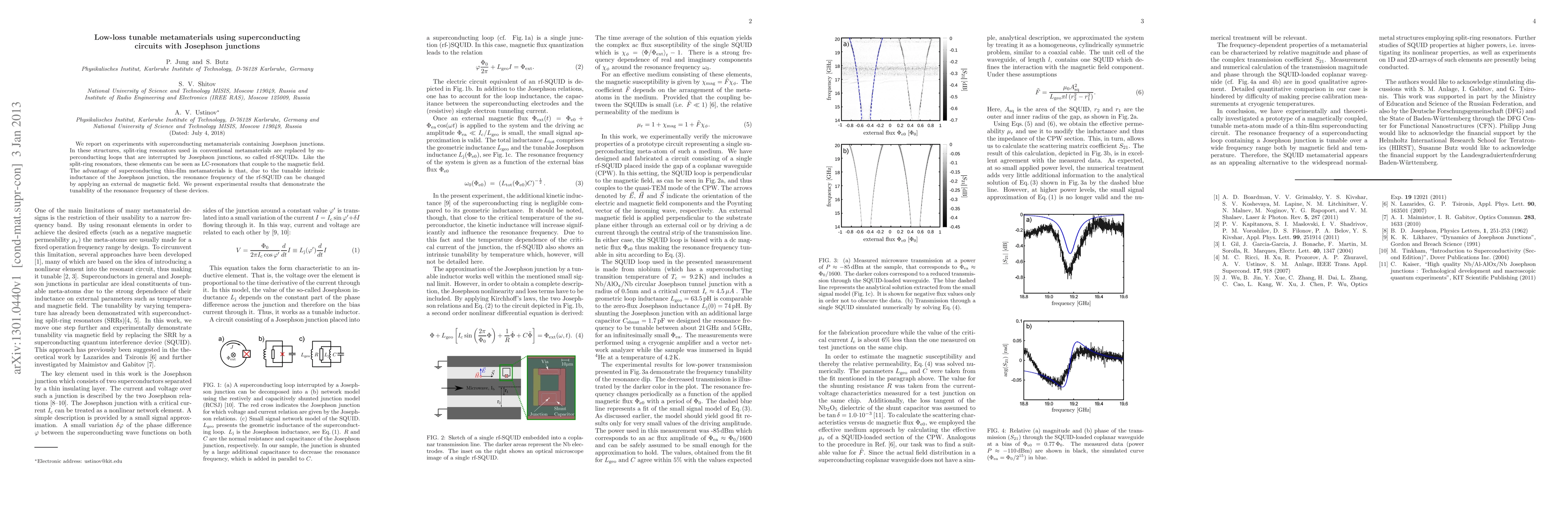 This paper reports on superconducting metamaterials with tunable resonance frequencies using Josephson junctions in place of split-ring resonators. The tunable inductance of Josephson junctions allows for the external magnetic field-induced adjustment of resonance frequency, as demonstrated by the experimental results.