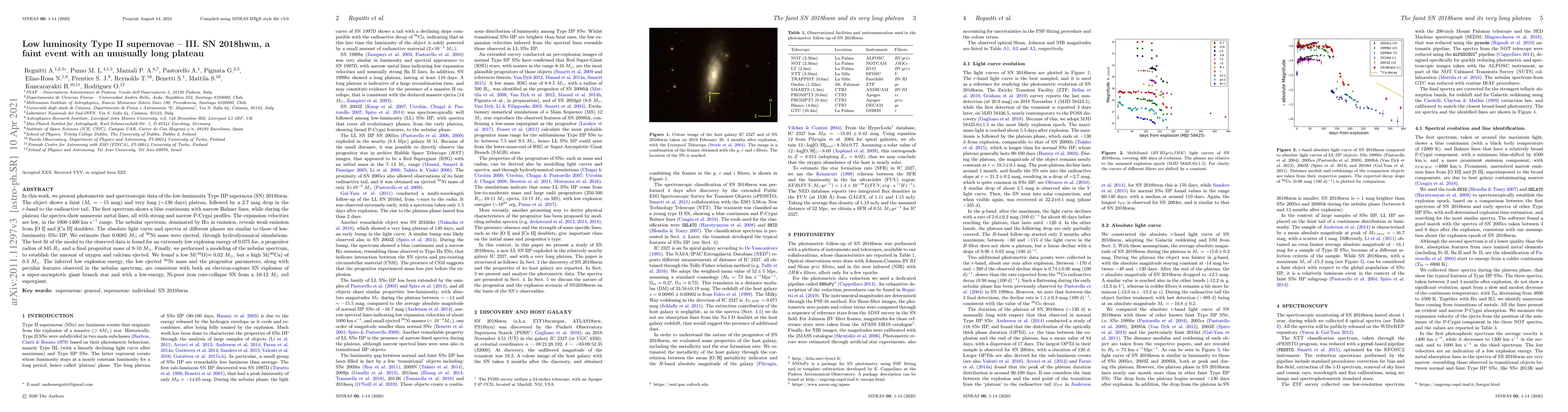 In this work, we present photometric and spectroscopic data of the low-luminosity Type IIP supernova (SN) 2018hwm. The object shows a faint ($M_r=-15$ mag) and very long ($\sim$130 days) plateau, followed by a 2.7 mag drop in the $r$-band to the radioactive tail. The first spectrum shows a blue continuum with narrow Balmer lines, while during the plateau the spectra show numerous metal lines, all with strong and narrow P-Cygni profiles. The expansion velocities are low, in the 1000-1400 km s$^{-1}$ range. The nebular spectrum, dominated by H$\alpha$ in emission, reveals weak emission from [O I] and [Ca II] doublets. The absolute light curve and spectra at different phases are similar to those of low-luminosity SNe IIP. We estimate that 0.0085 $M_{\odot}$ of $^{56}$Ni mass were ejected, through hydrodynamical simulations. The best fit of the model to the observed data is found for an extremely low explosion energy of 0.075 foe, a progenitor radius of 845 $R_{\odot}$ and a final progenitor mass of 9-10 $M_{\odot}$. Finally, we performed a modeling of the nebular spectrum, to establish the amount of oxygen and calcium ejected. We found a low M($^{16}$O)$\approx 0.02$ $M_{\odot}$, but a high M($^{40}$Ca) of 0.3 $M_{\odot}$. The inferred low explosion energy, the low ejected $^{56}$Ni mass and the progenitor parameters, along with peculiar features observed in the nebular spectrum, are consistent with both an electron-capture SN explosion of a super-asymptotic giant branch star and with a low-energy, Ni-poor iron core-collapse SN from a 10-12 $M_{\odot}$ red supergiant.