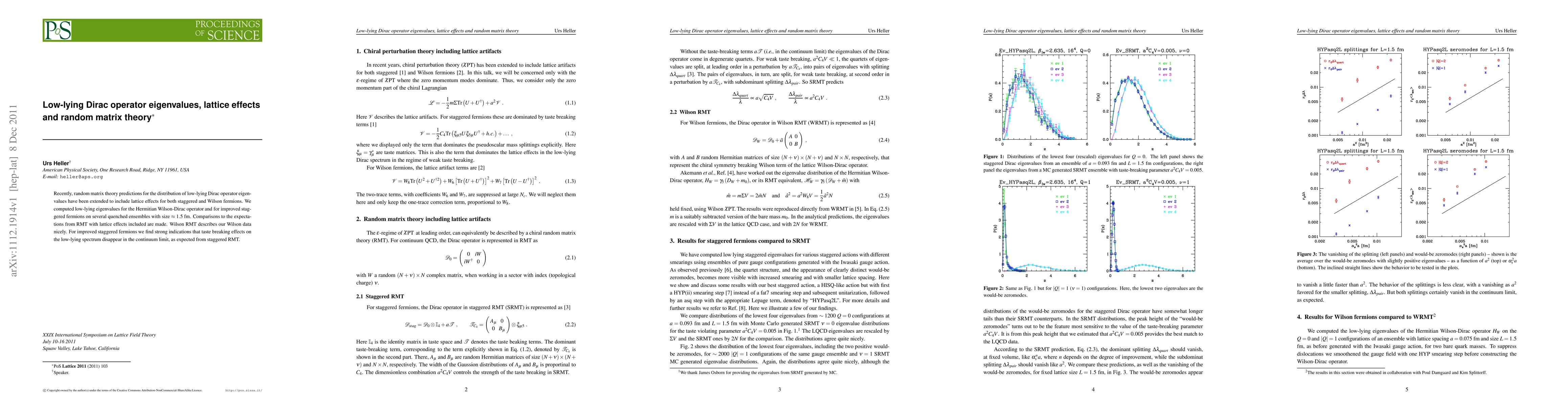 This paper investigates the distribution of low-lying Dirac operator eigenvalues, incorporating lattice effects for both staggered and Wilson fermions through random matrix theory (RMT). The study finds that Wilson RMT accurately describes the Wilson data, while staggered RMT suggests that taste breaking effects diminish in the continuum limit for improved staggered fermions.