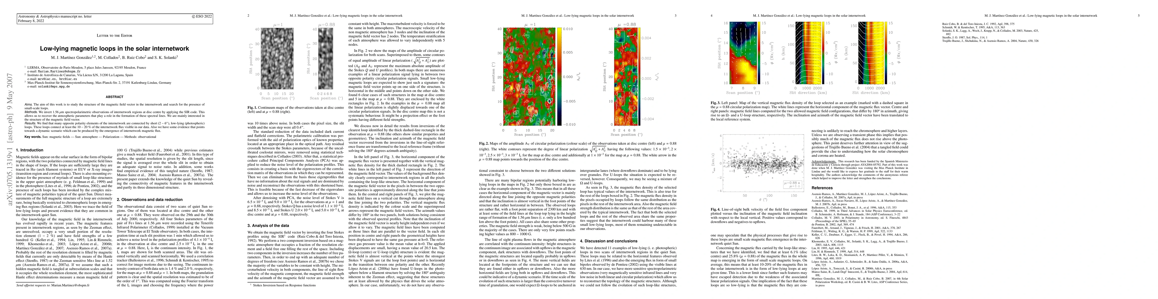 The aim of this work is to study the structure of the magnetic field vector in the internetwork and search for the presence of small-scale loops. We invert 1.56 micron spectropolarimetric observations of internetwork regions at disc centre by applying the SIR code. This allows us to recover the atmospheric parameters that play a role in the formation of these spectral lines. We are mainly interested in the structure of the magnetic field vector. We find that many opposite polarity elements of the internetwork are connected by short (2-6''), low-lying (photospheric) loops. These loops connect at least the 10-20 % of the internetwork flux visible in our data. Also we have some evidence that points towards a dynamic scenario which can be produced by the emergence of internetwork magnetic flux.