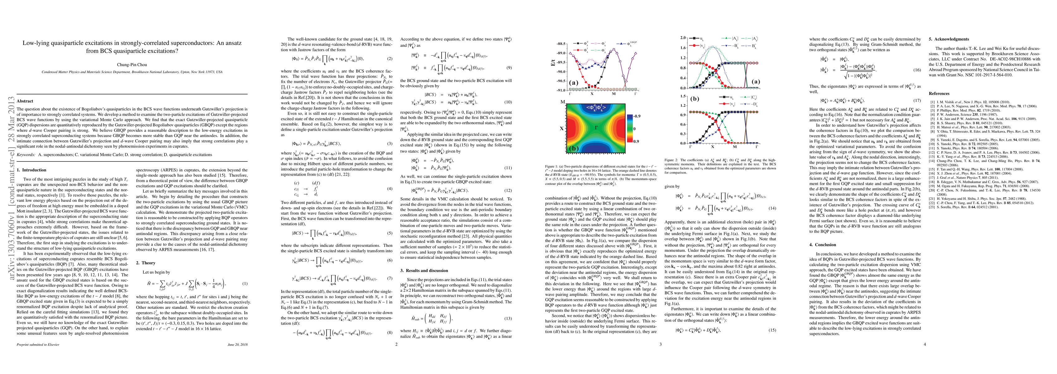 The question about the existence of Bogoliubov's quasiparticles in the BCS wave functions underneath Gutzwiller's projection is of importance to strongly correlated systems. We develop a method to examine the two-particle excitations of Gutzwiller-projected BCS wave functions by using the variational Monte Carlo approach. We find that the exact Gutzwiller-projected quasiparticle (GQP) dispersions are quantitatively reproduced by the Gutzwiller-projected Bogoliubov quasiparticles (GBQP) except the regions where d-wave Cooper pairing is strong. Since GQP still shows higher energy than GBQP near the antinodes, we believe GBQP provides a reasonable description to the low-energy excitations in strongly correlated superconducting systems. In addition, the intimate connection between Gutzwiller's projection and d-wave Cooper pairing may also imply that strong correlations play a significant role in the nodal-antinodal dichotomy seen by photoemission experiments in cuprates.