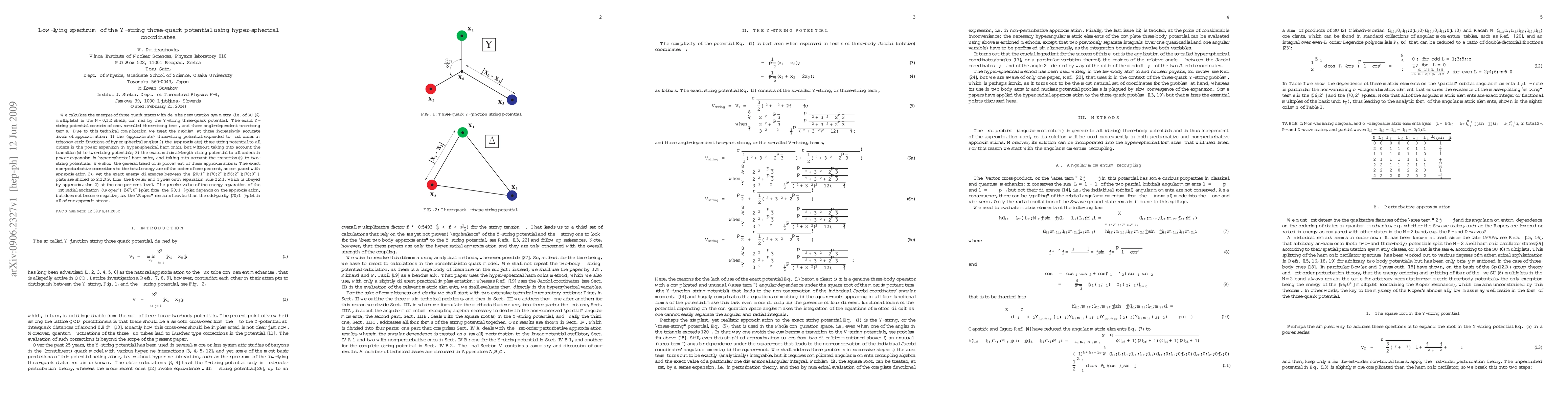 We calculate the energies of three-quark states with definite permutation symmetry (i.e. of SU(6) multiplets) in the N=0,1,2 shells, confined by the Y-string three-quark potential. The exact Y-string potential consists of one, so-called three-string term, and three angle-dependent two-string terms. Due to this technical complication we treat the problem at three increasingly accurate levels of approximation: 1) the (approximate) three-string potential expanded to first order in trigonometric functions of hyper-spherical angles; 2) the (approximate) three-string potential to all orders in the power expansion in hyper-spherical harmonics, but without taking into account the transition(s) to two-string potentials; 3) the exact minimal-length string potential to all orders in power expansion in hyper-spherical harmonics, and taking into account the transition(s) to two-string potentials. We show the general trend of improvement %convergence of these approximations: The exact non-perturbative corrections to the total energy are of the order of one per cent, as compared with approximation 2), yet the exact energy differences between the $[20,1^{+}], [70,2^{+}], [56,2^{+}], [70,0^{+}]$-plets are shifted to 2:2:0.9, from the Bowler and Tynemouth separation rule 2:2:1, which is obeyed by approximation 2) at the one per cent level. The precise value of the energy separation of the first radial excitation ("Roper") $[56^{\prime},0^{+}]$-plet from the $[70,1^{-}]$-plet depends on the approximation, but does not become negative, i.e. the "Roper" remains heavier than the odd-parity $[70,1^{-}]$-plet in all of our approximations.