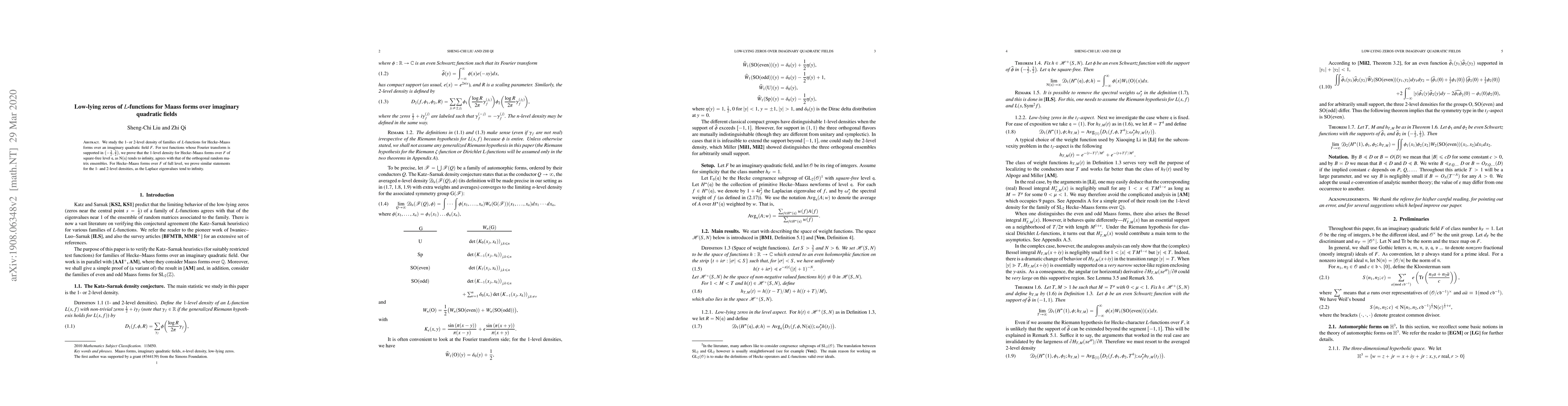 This paper investigates the $1$- and $2$-level densities of $L$-functions for Hecke-Maass forms over imaginary quadratic fields. It shows that these densities match those of orthogonal random matrix ensembles as the level tends to infinity.