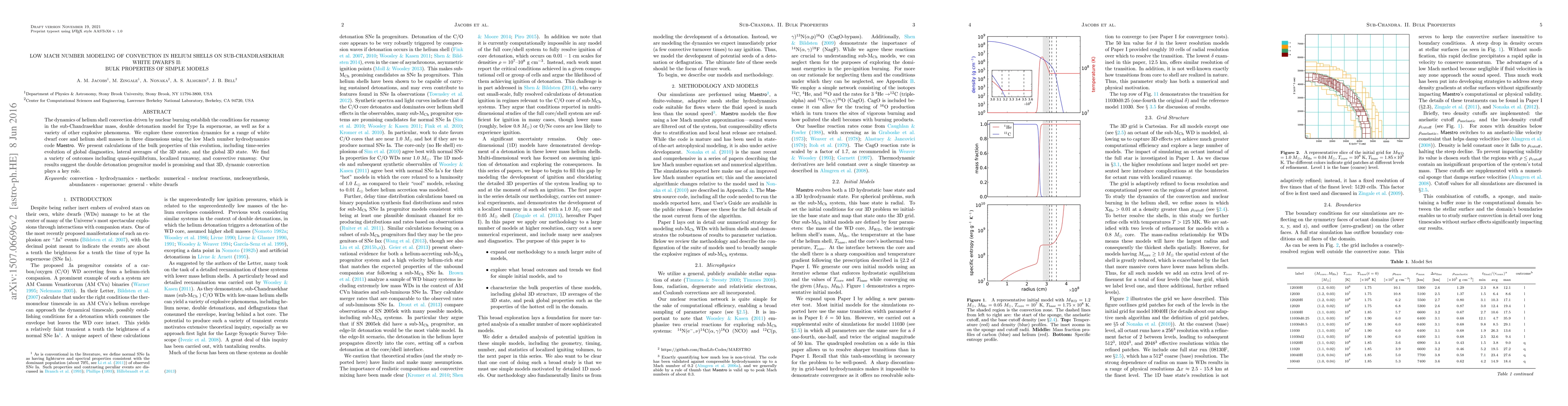 This paper investigates helium shell convection dynamics in sub-Chandrasekhar white dwarfs using a low Mach number hydrodynamics code, finding diverse outcomes including quasi-equilibrium and runaway scenarios. The study supports the double detonation model for Type Ia supernovae and highlights the importance of 3D dynamic convection.