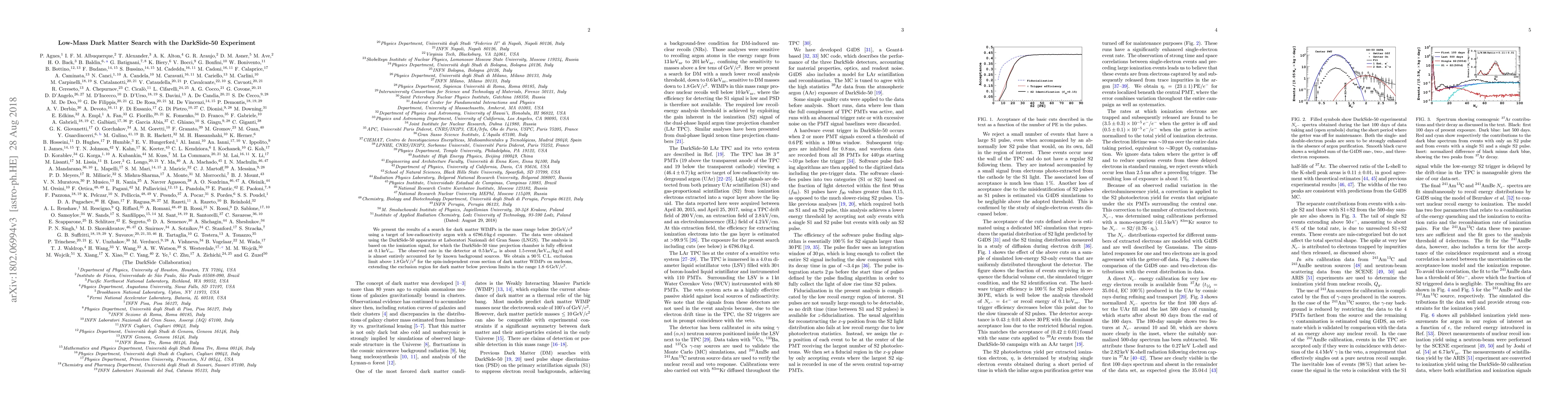 The DarkSide-50 experiment at LNGS searched for low-mass WIMP dark matter in the argon target, finding no evidence of WIMPs below 20 GeV/c^2. The analysis yielded a 90% C.L. exclusion limit for the spin-independent cross section above 1.8 GeV/c^2, extending previous limits.