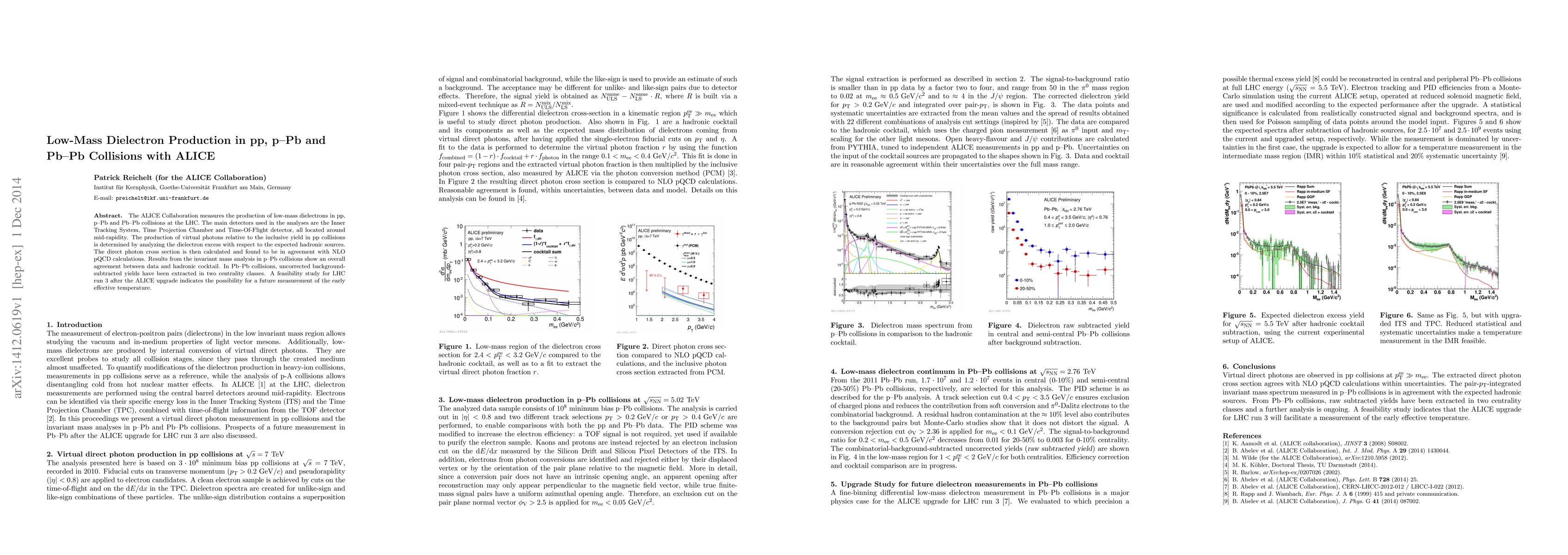 The ALICE Collaboration investigates low-mass dielectron production in pp, p-Pb, and Pb-Pb collisions at the LHC, finding agreement with NLO pQCD calculations for direct photon cross sections and potential future measurements of early effective temperature post-upgrade.