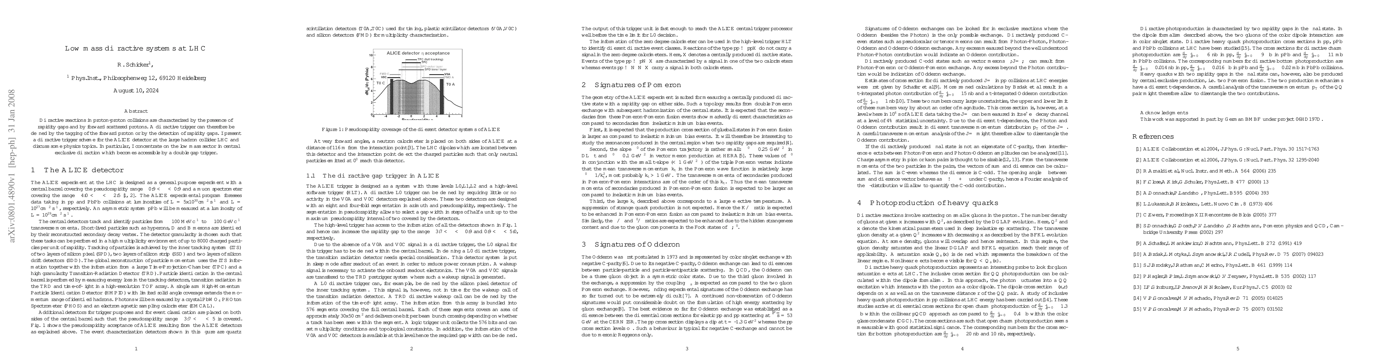 A rapidity gap trigger for the ALICE detector at the Large Hadron Collider LHC is presented and a few selected physics observables are discussed. First, some properties of double pomeron events are outlined. Second, signatures of the odderon in diffractive J/Psi production is discussed. Third, possible evidence of gluon saturation in the cross section of diffractive heavy quark photoproduction is investigated.