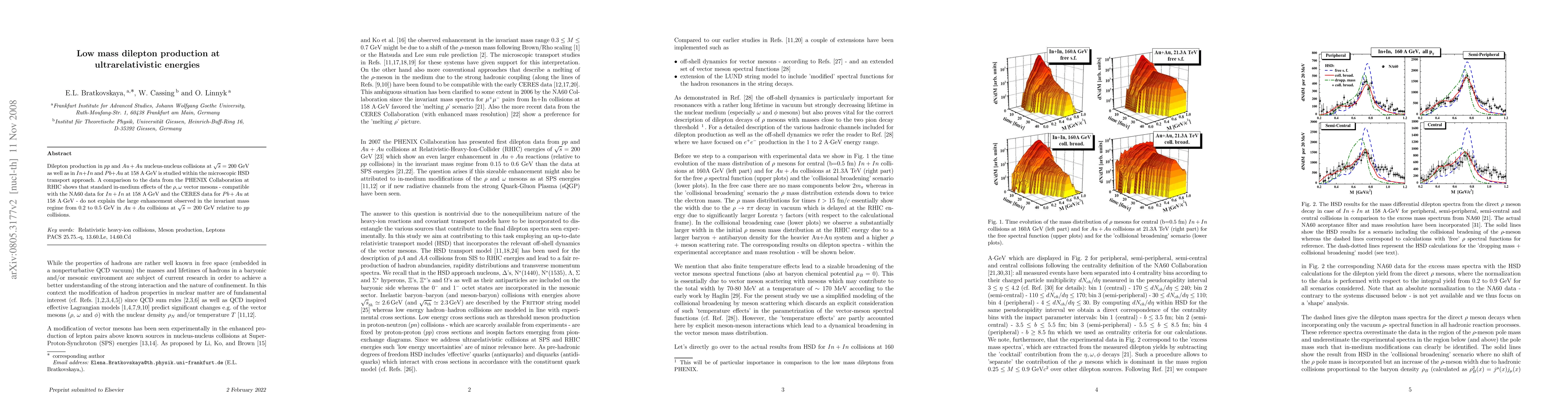 Researchers studied dilepton production in high-energy collisions and found that standard in-medium effects do not explain a large enhancement in invariant mass regime in ultrarelativistic Au+Au collisions at RHIC.