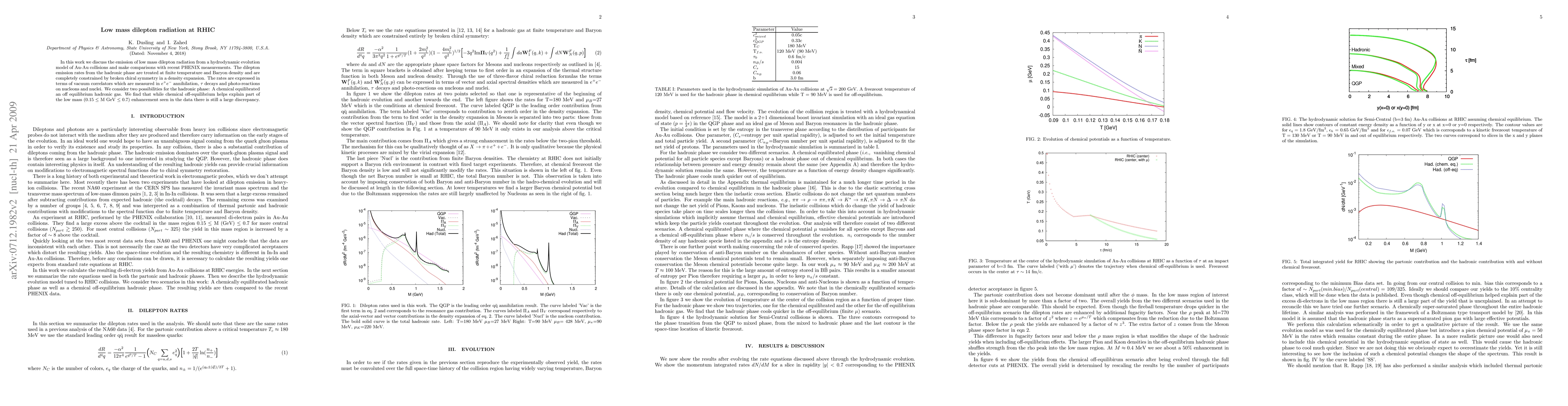 This paper investigates low mass dilepton radiation from hydrodynamic models of Au-Au collisions at RHIC, comparing results with PHENIX measurements. It finds that while off-equilibrium hadronic gas partially explains the observed dilepton enhancement, a significant discrepancy remains.
