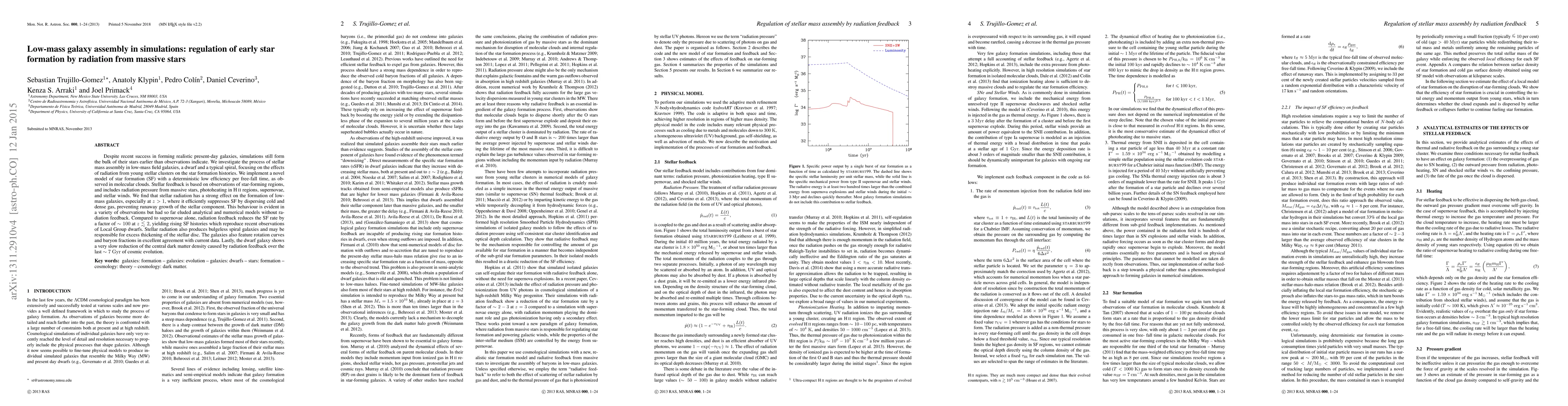 Despite recent success in forming realistic present-day galaxies, simulations still form the bulk of their stars earlier than observations indicate. We investigate the process of stellar mass assembly in low-mass field galaxies, a dwarf and a typical spiral, focusing on the effects of radiation from young stellar clusters on the star formation (SF) histories. We implement a novel model of SF with a deterministic low efficiency per free-fall time, as observed in molecular clouds. Stellar feedback is based on observations of star-forming regions, and includes radiation pressure from massive stars, photoheating in H II regions, supernovae and stellar winds. We find that stellar radiation has a strong effect on the formation of low-mass galaxies, especially at z > 1, where it efficiently suppresses SF by dispersing cold and dense gas, preventing runaway growth of the stellar component. This behaviour is evident in a variety of observations but had so far eluded analytical and numerical models without radiation feedback. Compared to supernovae alone, radiation feedback reduces the SF rate by a factor of ~100 at z < 2, yielding rising SF histories which reproduce recent observations of Local Group dwarfs. Stellar radiation also produces bulgeless spiral galaxies and may be responsible for excess thickening of the stellar disc. The galaxies also feature rotation curves and baryon fractions in excellent agreement with current data. Lastly, the dwarf galaxy shows a very slow reduction of the central dark matter density caused by radiation feedback over the last ~7 Gyr of cosmic evolution.