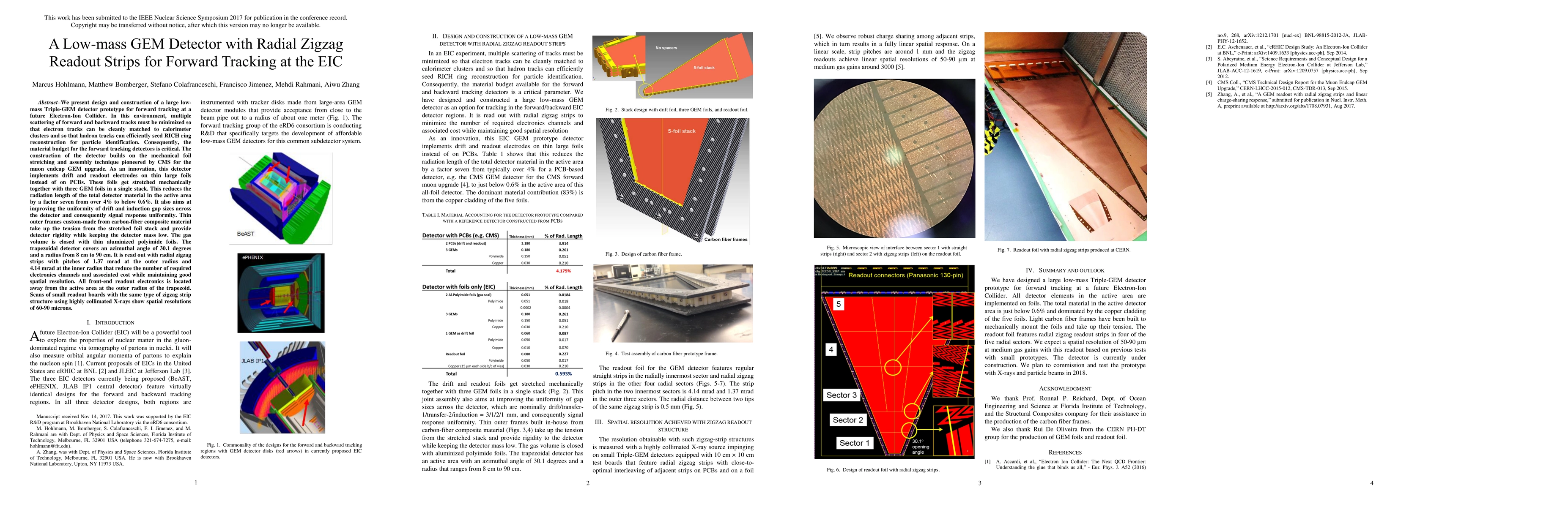 This paper details the design and construction of a low-mass Triple-GEM detector prototype for forward tracking at the Electron-Ion Collider, emphasizing material reduction and spatial resolution. The detector uses mechanically stretched foils instead of PCBs, reducing the radiation length by a factor of seven and employing radial zigzag readout strips to balance resolution and cost.