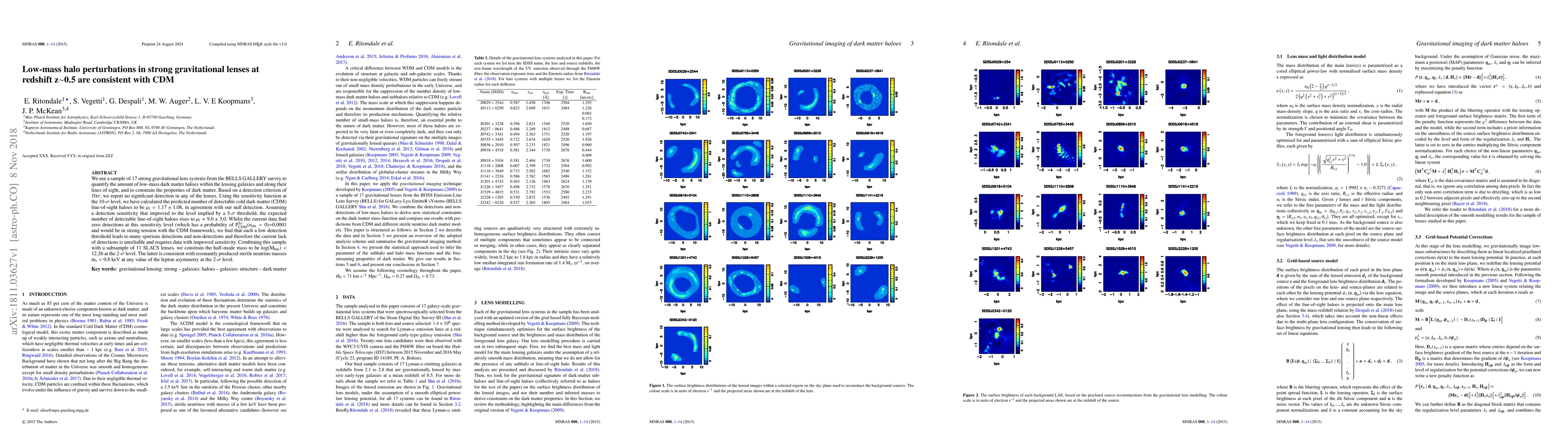We use a sample of 17 strong gravitational lens systems from the BELLS GALLERY survey to quantify the amount of low-mass dark matter haloes within the lensing galaxies and along their lines of sight, and to constrain the properties of dark matter. Based on a detection criterion of 10$\sigma$, we report no significant detection in any of the lenses. Using the sensitivity function at the 10-$\sigma$ level, we have calculated the predicted number of detectable cold dark matter (CDM) line-of-sight haloes to be $\mu_{l} = 1.17\pm1.08$, in agreement with our null detection. Assuming a detection sensitivity that improved to the level implied by a 5-$\sigma$ threshold, the expected number of detectable line-of-sight haloes rises to $\mu_l = 9.0\pm3.0$. Whilst the current data find zero detections at this sensitivity level (which has a probability of P$^{{\rm5}\sigma}_{{\rm CDM}}(n_{\rm det}=0)$=0.0001 and would be in strong tension with the CDM framework), we find that such a low detection threshold leads to many spurious detections and non-detections and therefore the current lack of detections is unreliable and requires data with improved sensitivity. Combining this sample with a subsample of 11 SLACS lenses, we constrain the half-mode mass to be $\log$(M$_{\rm hm}) < 12.26$ at the 2-$\sigma$ level. The latter is consistent with resonantly produced sterile neutrino masses m$_{\rm s} < 0.8$ keV at any value of the lepton asymmetry at the 2-$\sigma$ level.