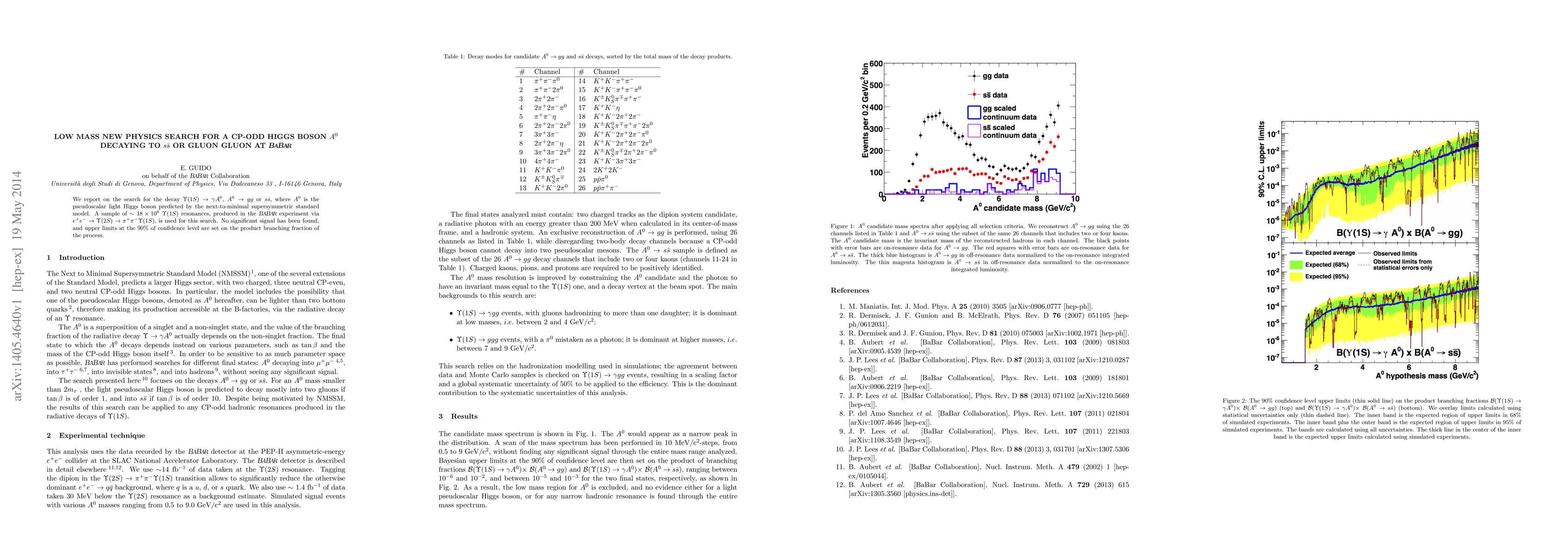 We report on the search for the decay $\Upsilon(1S) \to \gamma A^0$, $A^0 \to gg$ or $s\bar s$, where $A^0$ is the pseudoscalar light Higgs boson predicted by the next-to-minimal supersymmetric standard model. A sample of $\sim 18 \times 10^6$ $\Upsilon(1S)$ resonances, produced in the BaBar experiment via $e^+e^- \to \Upsilon(2S) \to \pi^+\pi^-\Upsilon(1S)$, is used for this search. No significant signal has been found, and upper limits at the $90\%$ of confidence level are set on the product branching fraction of the process.
