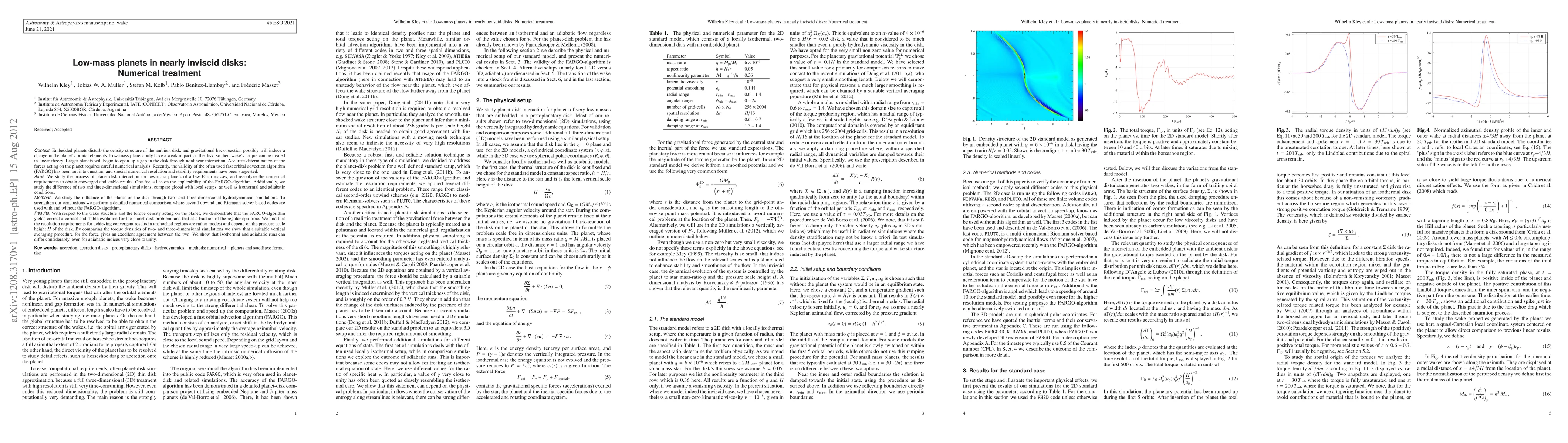 Embedded planets disturb the density structure of the ambient disk and gravitational back-reaction will induce possibly a change in the planet's orbital elements. The accurate determination of the forces acting on the planet requires careful numerical analysis. Recently, the validity of the often used fast orbital advection algorithm (FARGO) has been put into question, and special numerical resolution and stability requirements have been suggested. In this paper we study the process of planet-disk interaction for small mass planets of a few Earth masses, and reanalyze the numerical requirements to obtain converged and stable results. One focus lies on the applicability of the FARGO-algorithm. Additionally, we study the difference of two and three-dimensional simulations, compare global with local setups, as well as isothermal and adiabatic conditions. We study the influence of the planet on the disk through two- and three-dimensional hydrodynamical simulations. To strengthen our conclusions we perform a detailed numerical comparison where several upwind and Riemann-solver based codes are used with and without the FARGO-algorithm. With respect to the wake structure and the torque density acting on the planet we demonstrate that the FARGO-algorithm yields correct results, and that at a fraction of the regular cpu-time. We find that the resolution requirements for achieving convergent results in unshocked regions are rather modest and depend on the pressure scale height of the disk. By comparing the torque densities of 2D and 3D simulations we show that a suitable vertical averaging procedure for the force gives an excellent agreement between the two. We show that isothermal and adiabatic runs can differ considerably, even for adiabatic indices very close to unity.