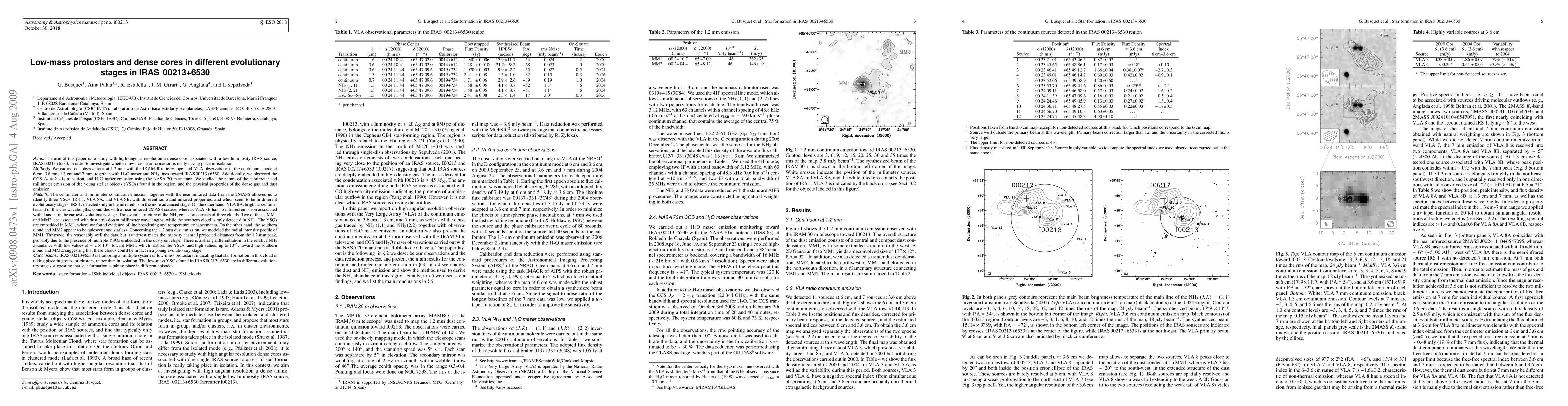 This study investigates low-mass protostars in IRAS 00213+6530 using high-resolution observations, revealing three YSOs in different evolutionary stages. Star formation appears to occur in groups rather than isolation, with varying NH3 abundances suggesting different evolutionary stages.