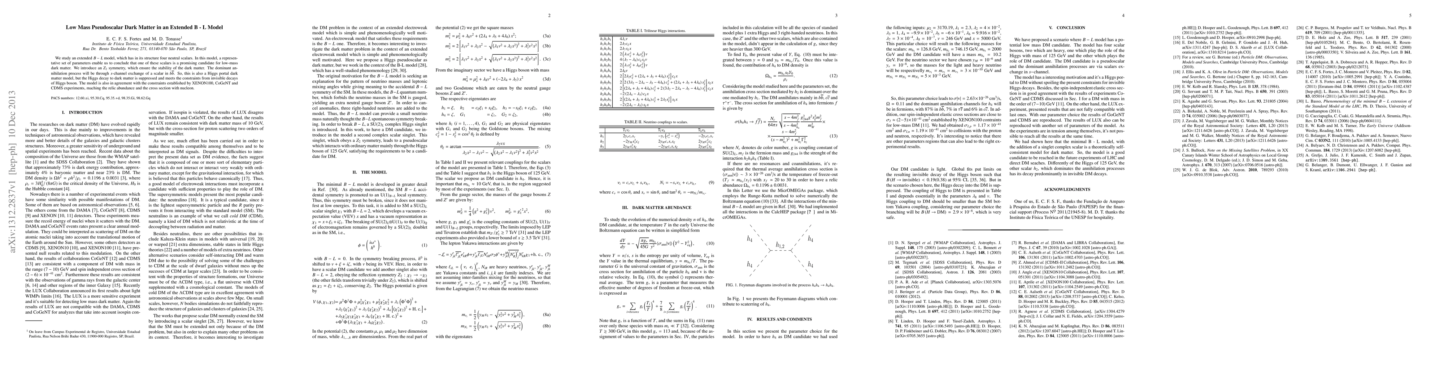 We study an extended B-L model, which has in its structure four neutral scalars. In this model, a representative set of parameters enable us to conclude that one of these scalars is a promising candidate for low-mass dark matter. We introduce an Z_2 symmetry, which ensure the stability of the dark matter. The dominant annihilation process will be through $s$-channel exchange of a scalar in $b\overline{b}$. So, this is also a Higgs portal dark matter model, but the Higgs decay to dark matter is suppressed and meets the constraints from invisible decays of Higgs boson. The model is also in agreement with the constraints established by XENON100, CoGeNT and CDMS experiments, maching the relic abundance and the cross section with nucleon.