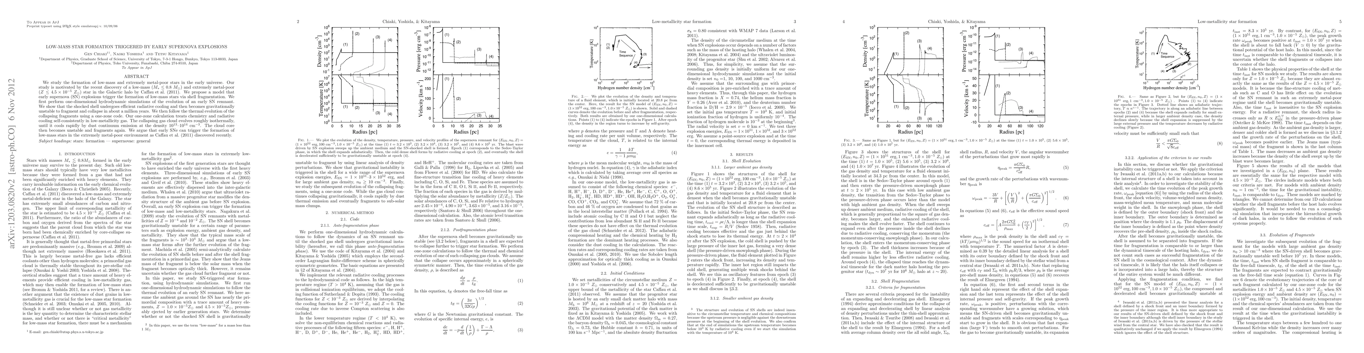 A study proposes that early supernovae explosions can trigger the formation of low-mass stars in extremely metal-poor environments, with simulations showing that shocked shells can collapse and fragment in about ten million years.