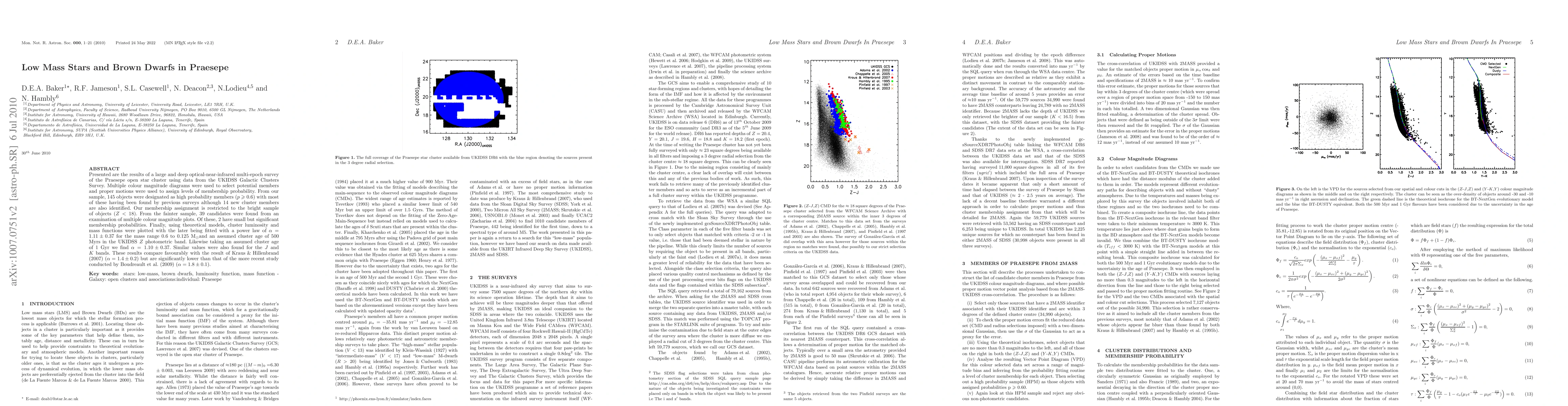 Presented are the results of a large and deep optical-near-infrared multi-epoch survey of the Praesepe open star cluster using data from the UKIDSS Galactic Clusters Survey. Multiple colour magnitude diagrams were used to select potential members and proper motions were used to assign levels of membership probability. From our sample, 145 objects were designated as high probability members (p >= 0.6) with most of these having been found by previous surveys although 14 new cluster members are also identified. Our membership assignment is restricted to the bright sample of objects (Z < 18). From the fainter sample, 39 candidates were found from an examination of multiple colour magnitude plots. Of these, 2 have small but significant membership probabilities. Finally, using theoretical models, cluster luminosity and mass functions were plotted with the later being fitted with a power law of alpha = 1.11 +/- 0.37 for the mass range 0.6 to 0.125 Msun and an assumed cluster age of 500 Myrs in the UKIDSS Z photometric band. Likewise taking an assumed cluster age of 1 Gyr we find alpha = 1.10 +/- 0.37. Similar values were also found for the J and K bands. These results compare favourably with the result of Kraus & Hillenbrand (2007) (alpha = 1.4 +/- 0.2) but are significantly lower than that of the more recent study conducted by Boudreault et al. (2009) (alpha = 1.8 +/- 0.1).