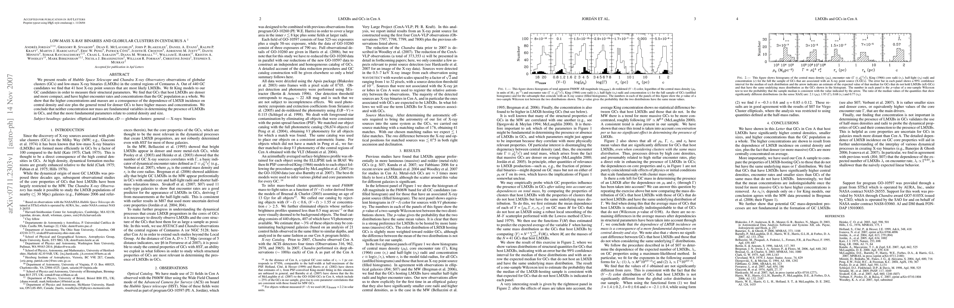 This study investigates the relationship between globular clusters and low-mass X-ray binaries in Centaurus A using Hubble and Chandra observations. It finds that globular clusters hosting low-mass X-ray binaries are denser and more compact, suggesting that central density and size, rather than concentration or mass, are key factors in the presence of these binaries.