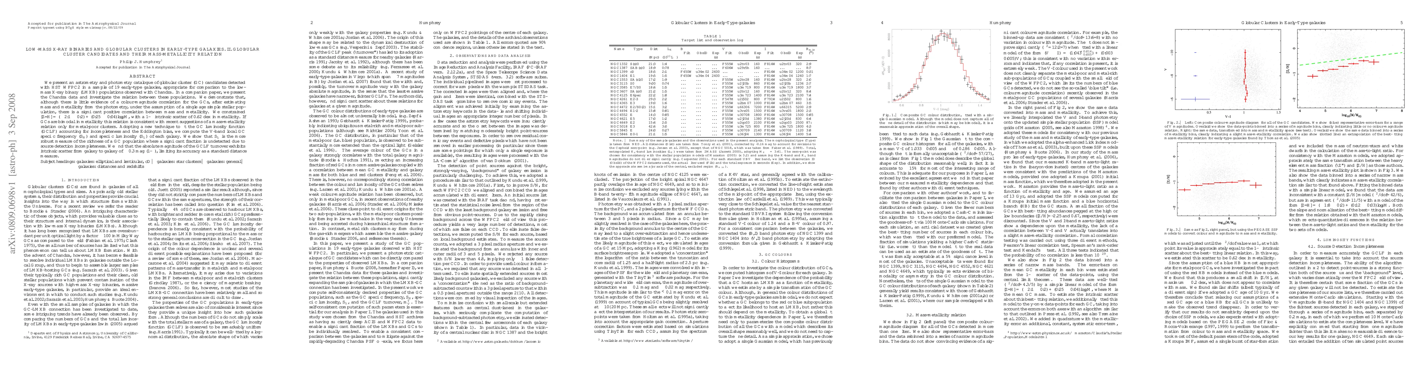 Researchers created a catalog of globular cluster candidates in early-type galaxies to study their relationship with low-mass X-ray binaries. They found a significant positive correlation between the mass and metallicity of these clusters, with implications for understanding galaxy evolution.