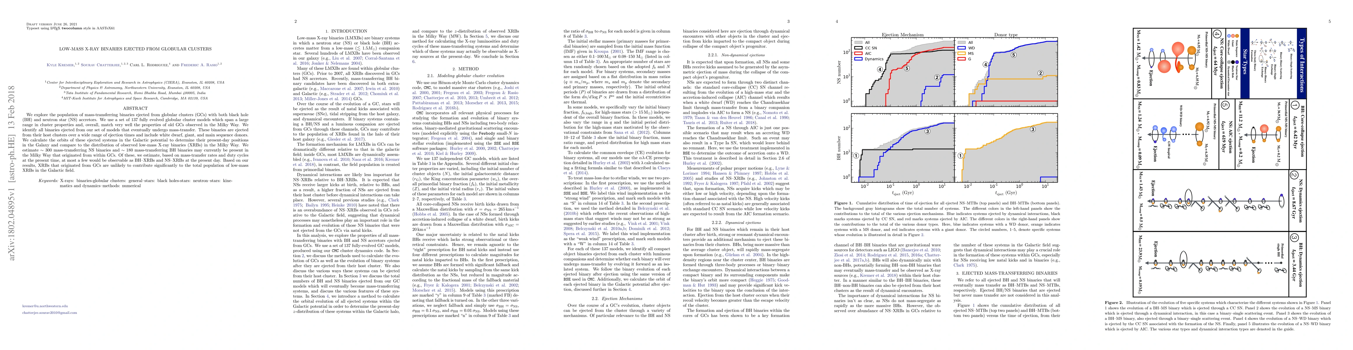 This paper investigates the population of mass-transferring low-mass X-ray binaries (XRBs) ejected from globular clusters, estimating around 300 neutron star and 180 black hole binaries originating from such clusters. It concludes that these ejected binaries are unlikely to significantly contribute to the total Milky Way population of low-mass XRBs.