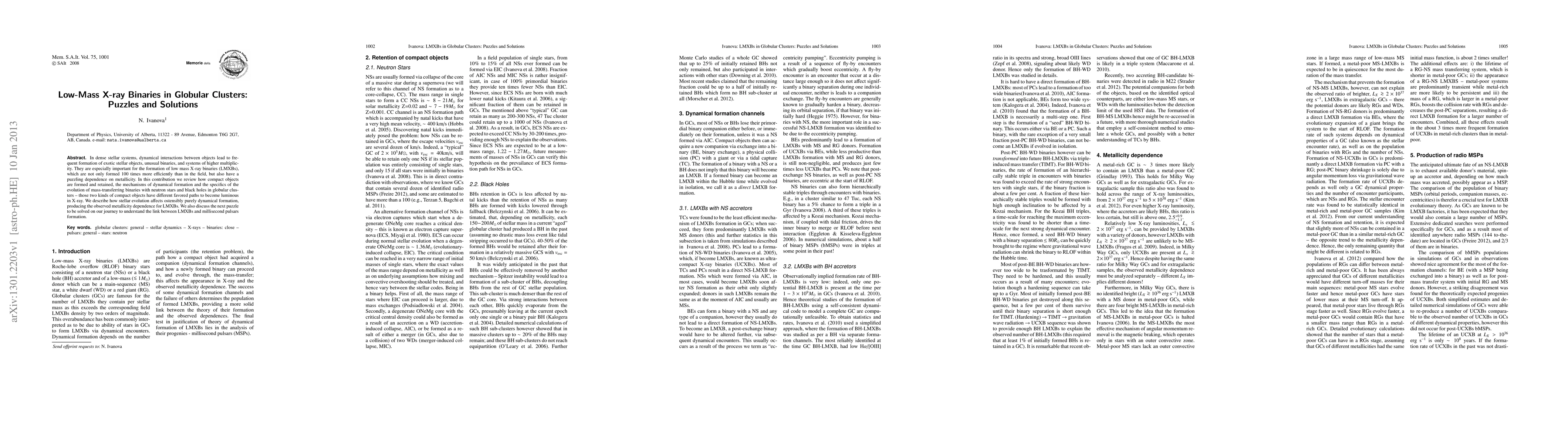 This paper reviews the formation and retention mechanisms of low-mass X-ray binaries (LMXBs) in globular clusters, highlighting the differing evolutionary paths of binaries with neutron stars and black holes. It also explores the puzzling metallicity dependence of LMXBs and discusses the connection between LMXBs and the formation of millisecond pulsars.