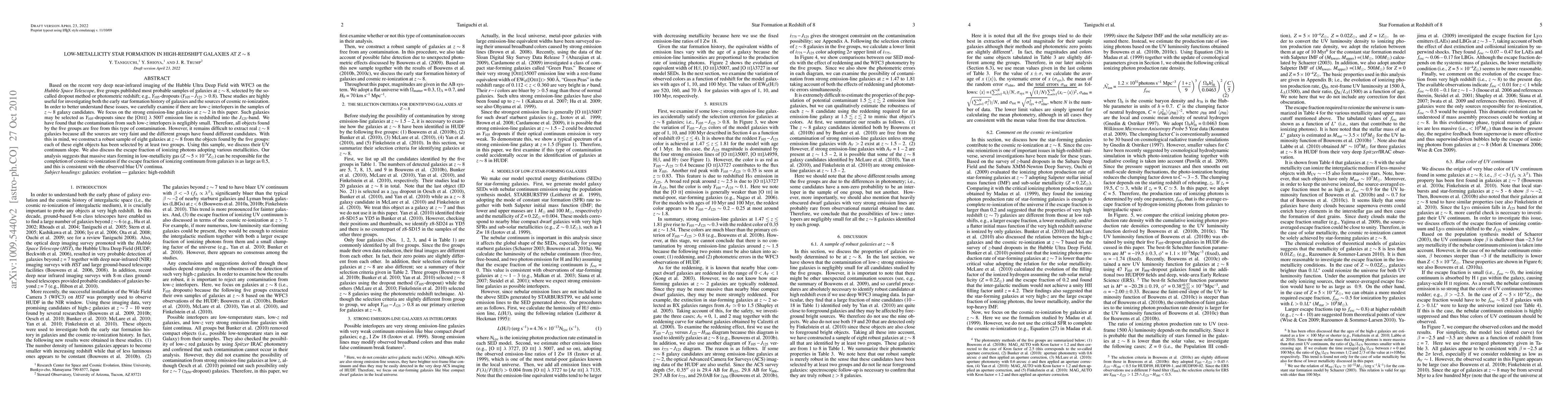 A study examines galaxy formation at z~8 and finds low-metallicity star formation can complete cosmic re-ionization if ionizing photons escape from galaxies with a high enough fraction.