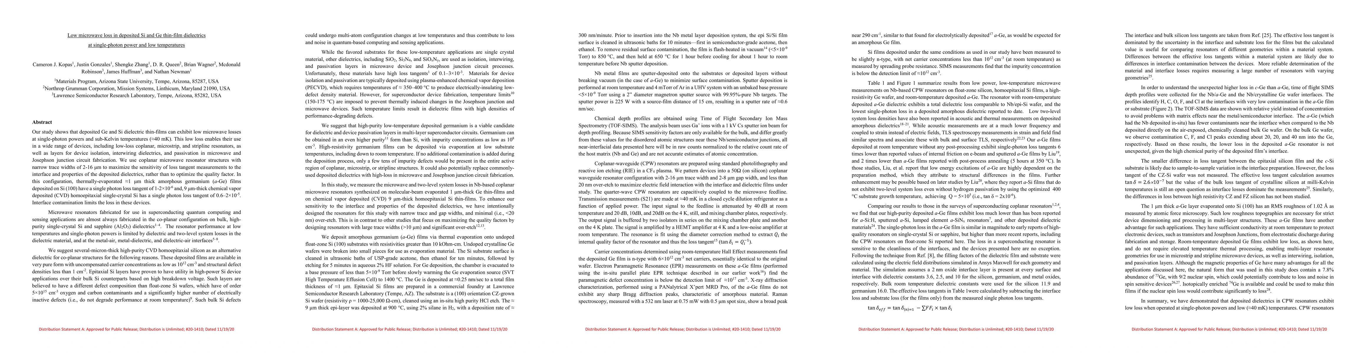 This study demonstrates that deposited Si and Ge thin-film dielectrics exhibit exceptionally low microwave losses at near single-photon powers and sub-Kelvin temperatures, making them suitable for various microwave devices. The low loss tangents achieved in these materials enable their use in coplanar, microstrip, and stripline resonators, as well as in device isolation and passivation.
