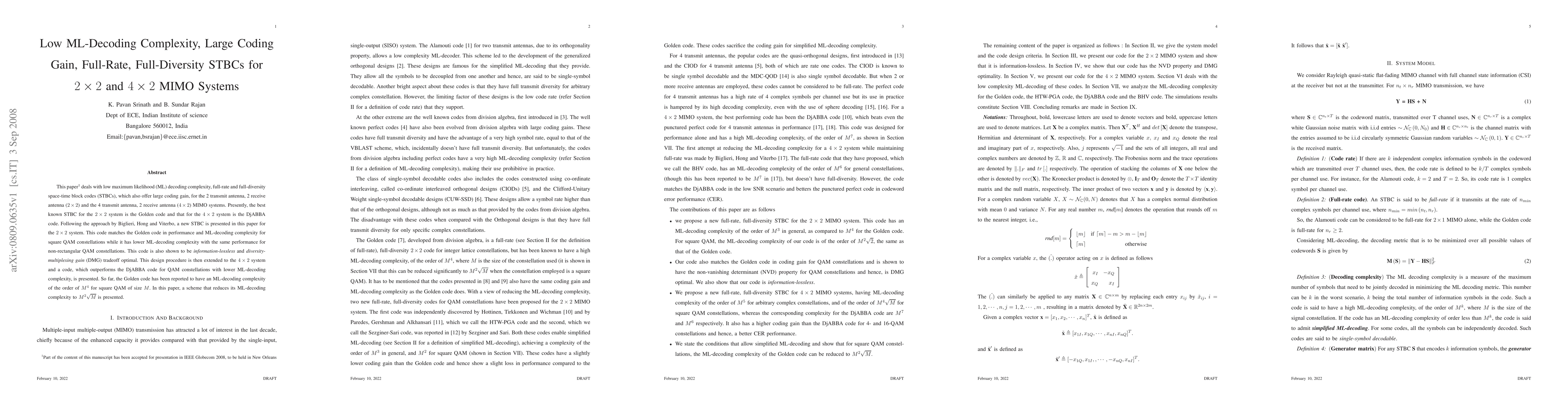 This paper proposes new low-complexity space-time block codes (STBCs) for $2\times2$ and $4\times2$ MIMO systems that achieve full-rate, full-diversity, and large coding gain, while significantly reducing maximum likelihood decoding complexity compared to existing codes like the Golden code and DjABBA code.