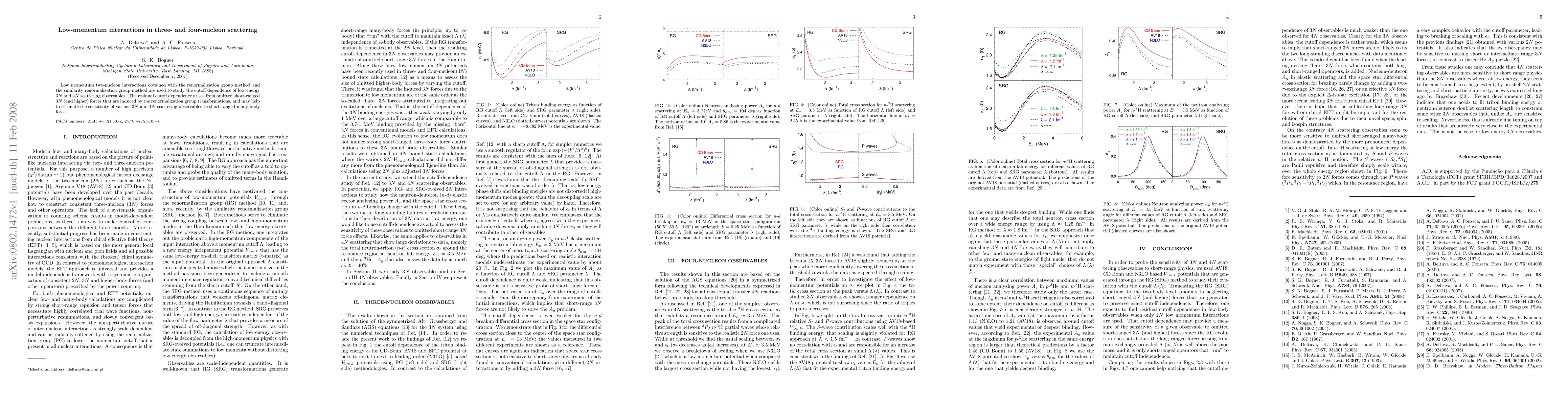 Low momentum two-nucleon interactions obtained with the renormalization group method and the similarity renormalization group method are used to study the cutoff dependence of low energy 3N and 4N scattering observables. The residual cutoff dependence arises from omitted short-ranged 3N (and higher) forces that are induced by the renormalization group transformations, and may help to estimate the sensitivity of various 3N and 4N scattering observables to short-ranged many-body forces.