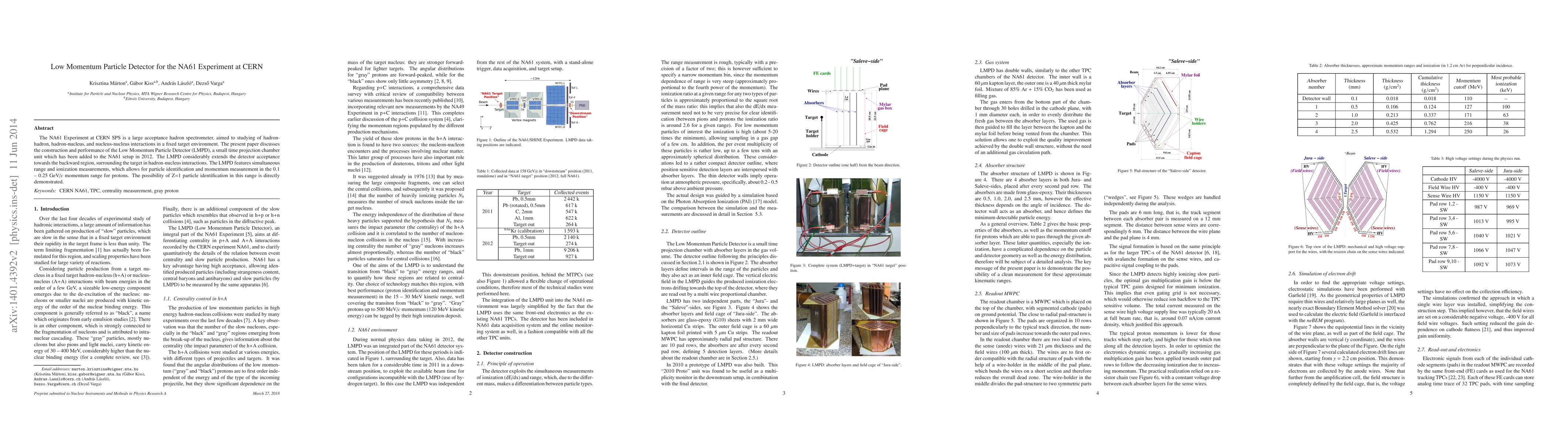 The paper details the design, construction, and performance of the Low Momentum Particle Detector (LMPD), a time projection chamber unit added to the NA61 setup at CERN SPS. It focuses on the LMPD's double-walled structure, glass-epoxy absorber layers, and multi-wire proportional chamber (MWPC) readout, along with simulation and calibration procedures.