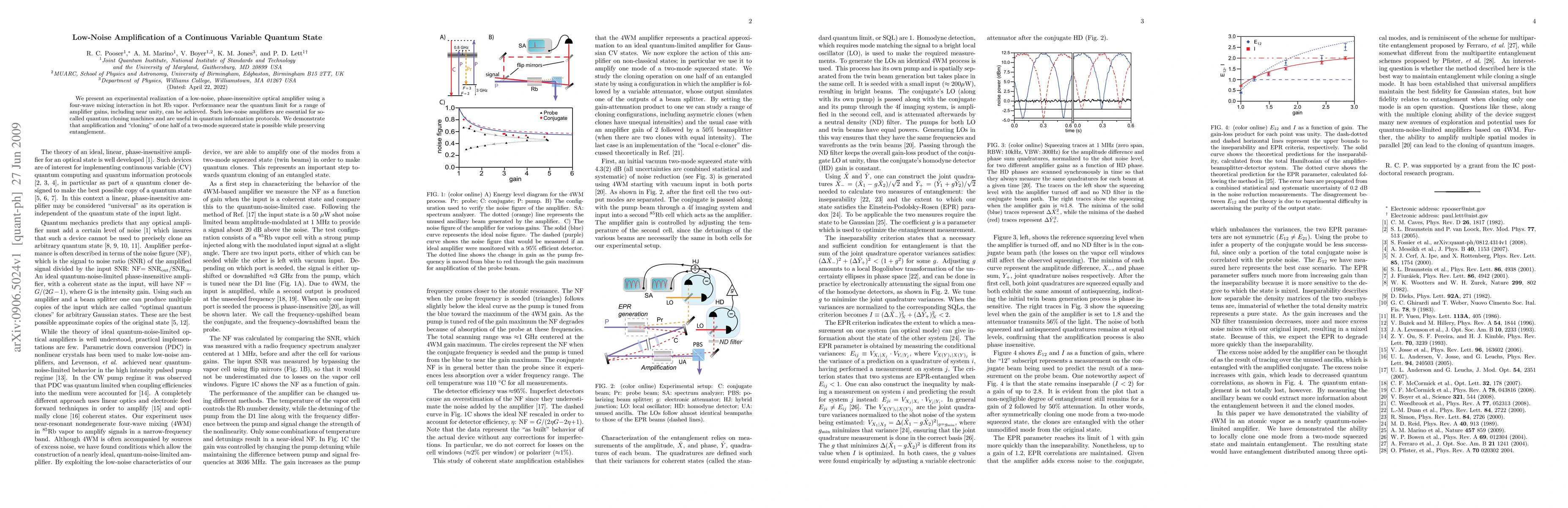 This paper demonstrates a low-noise optical amplifier using four-wave mixing in hot Rb vapor, achieving near-quantum-limit performance. The amplifier successfully amplifies and "clones" one half of a two-mode squeezed state while preserving entanglement, crucial for quantum information protocols.