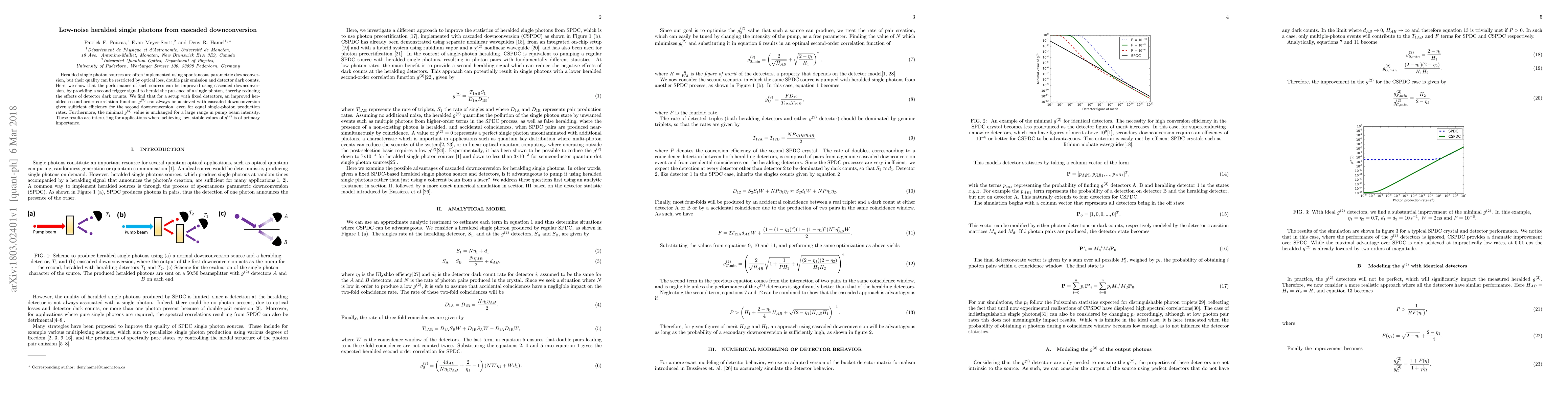 Cascaded downconversion enhances the quality of heralded single photon sources by providing a second trigger signal, reducing optical loss and detector dark counts, and achieving improved $g^{(2)}$ values for stable photon generation, crucial for applications requiring low $g^{(2)}$ values.