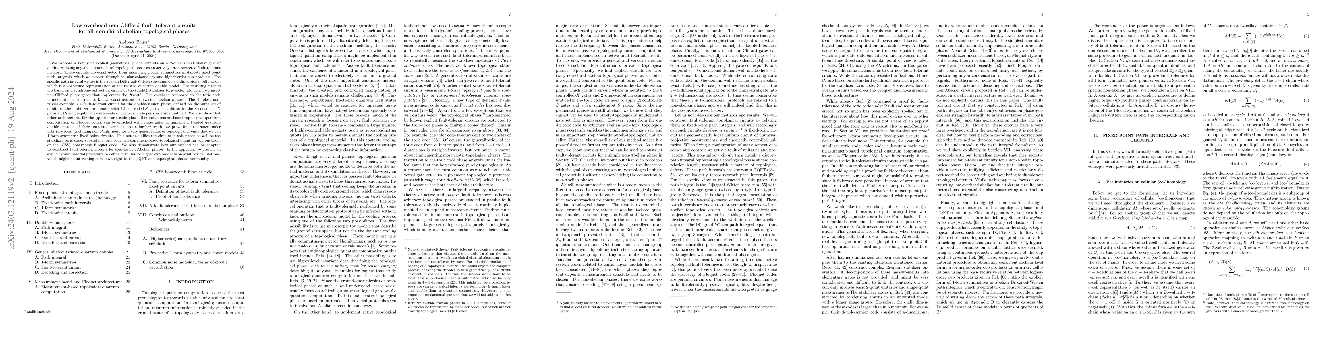 This paper proposes geometrically local circuits to realize fault-tolerant memories for all abelian non-chiral topological phases, using a moderate overhead compared to traditional methods. The circuits leverage 1-form symmetries and the abelian Dijkgraaf-Witten state sum, achieving fault tolerance under various noise types.