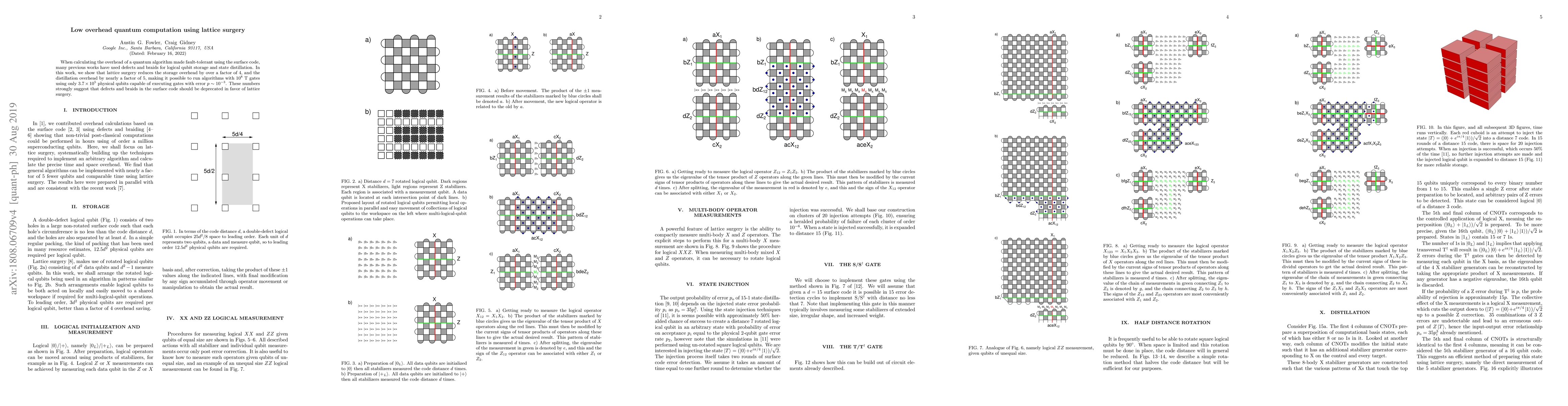 This paper demonstrates that lattice surgery significantly reduces the overhead for fault-tolerant quantum computation using the surface code, lowering storage and distillation overheads by factors of 4 and 5 respectively. This advancement enables running algorithms with $10^8$ T gates using only $3.7\times 10^5$ physical qubits, suggesting a shift from defects and braids to lattice surgery.