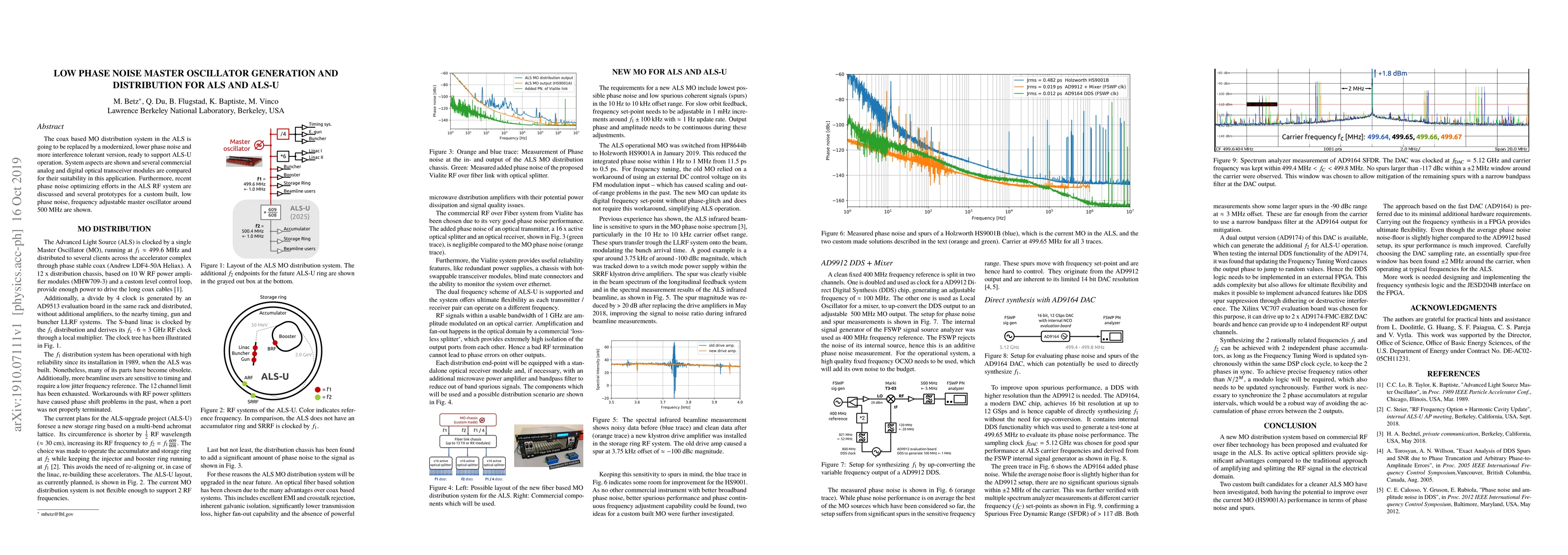 The coax based MO distribution system in the ALS is going to be replaced by a modernized, lower phase noise and more interference tolerant version, ready to support ALS-U operation. System aspects are shown and several commercial analog and digital optical transceiver modules are compared for their suitability in this application. Furthermore, recent phase noise optimizing efforts in the ALS RF system are discussed and several prototypes for a custom built, low phase noise, frequency adjustable master oscillator around 500 MHz are shown.