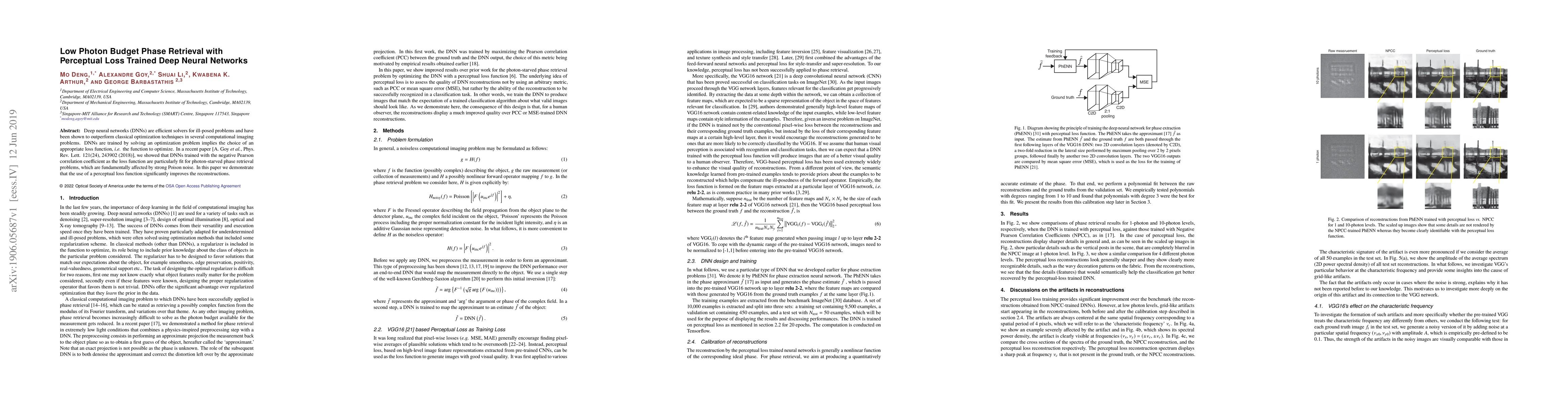 Deep neural networks (DNNs) are efficient solvers for ill-posed problems and have been shown to outperform classical optimization techniques in several computational imaging problems. DNNs are trained by solving an optimization problem implies the choice of an appropriate loss function, i.e., the function to optimize. In a recent paper [A. Goy \textit{et al.}, Phys. Rev. Lett. 121(24), 243902 (2018)], we showed that DNNs trained with the negative Pearson correlation coefficient as the loss function are particularly fit for photon-starved phase retrieval problems, which are fundamentally affected by strong Poison noise. In this paper we demonstrate that the use of a perceptual loss function significantly improves the reconstructions.