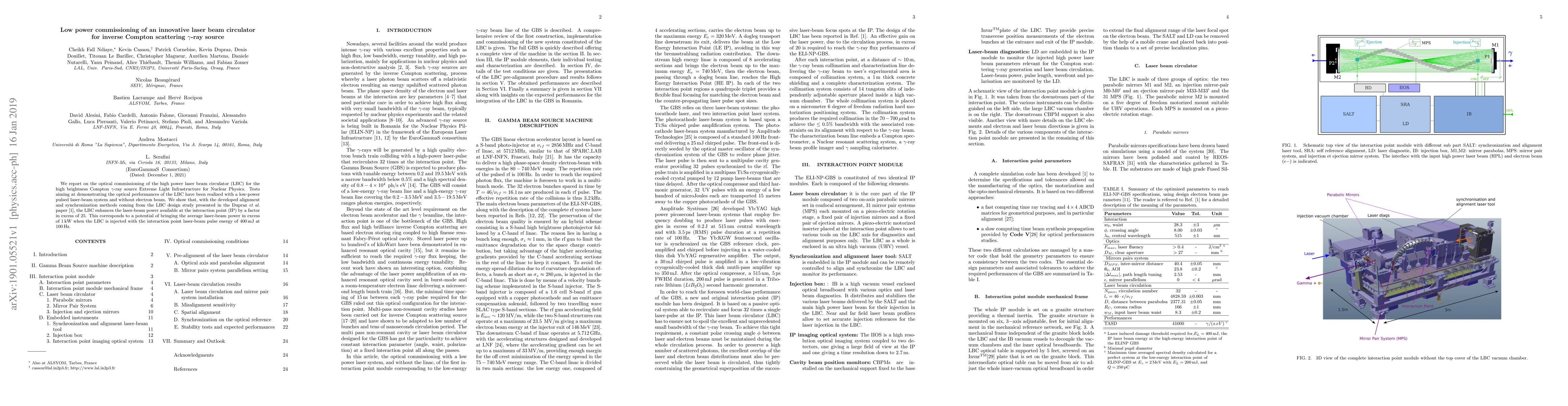 We report on the optical commissioning of the high power laser beam circulator (LBC) for the high brightness Compton {\gamma}-ray source Extreme Light Infrastructure for Nuclear Physics. Tests aiming at demonstrating the optical performances of the LBC have been realized with a low-power pulsed laser-beam system and without electron beam. We show that, with the developed alignment and synchronization methods coming from the LBC design study presented in the Dupraz et al. paper [1], the LBC enhances the laser-beam power available at the interaction point (IP) by a factor in excess of 25. This corresponds to a potential of bringing the average laser-beam power in excess of 1 kW when the LBC is injected with the interaction point laser-beam pulse energy of 400 mJ at 100 Hz.