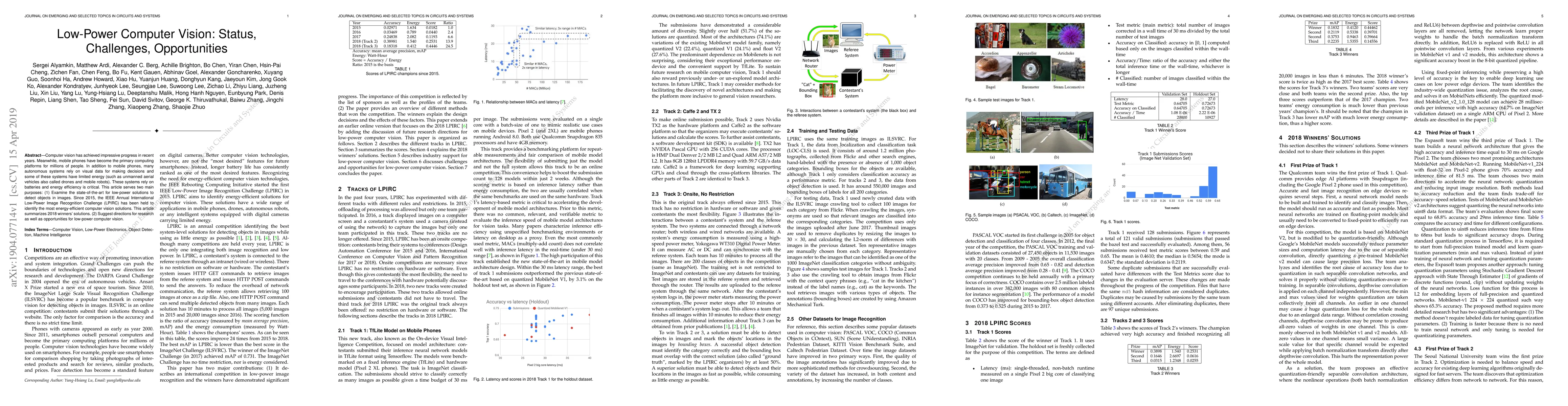 This paper reviews the latest advancements in low-power computer vision, focusing on the 2018 IEEE LPIRC winners' solutions for energy-efficient object detection. It also outlines future research directions and opportunities to enhance energy efficiency in mobile and autonomous systems.