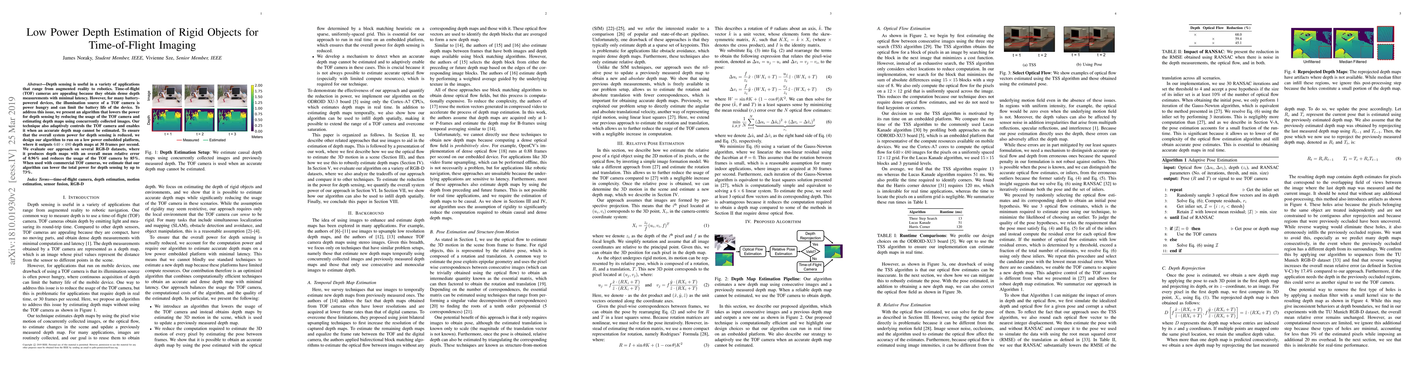 This paper presents an algorithm to reduce power consumption in depth sensing for battery-powered devices using TOF cameras, achieving an 85% reduction in TOF camera usage while maintaining a mean relative error of 0.96% in depth maps. The algorithm runs on a low power embedded platform and can lower total power usage by up to 73%.