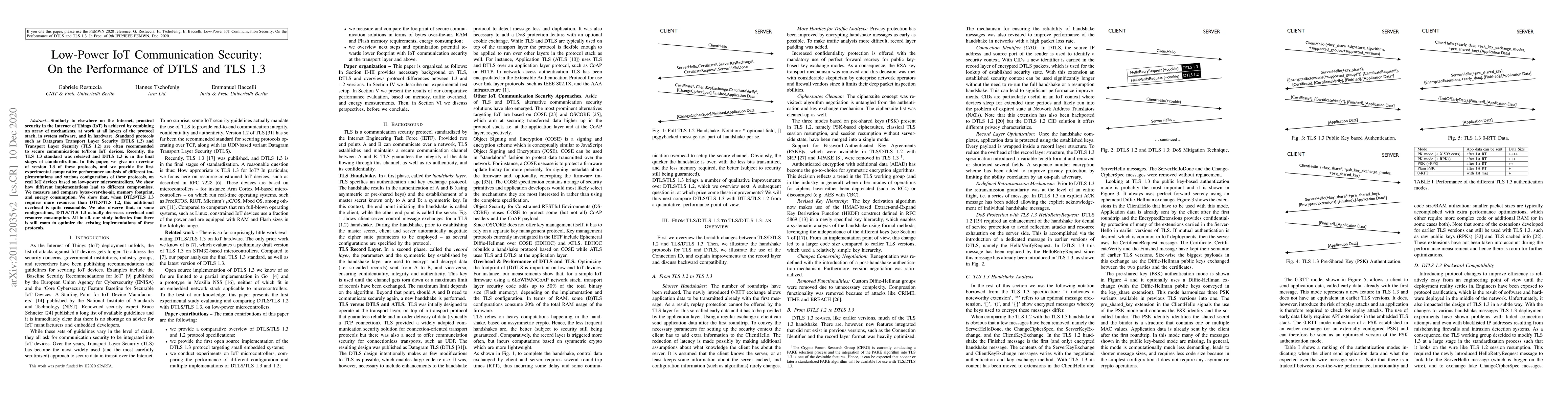 This paper provides a comparative performance analysis of DTLS 1.3 and TLS 1.3 on low-power IoT devices, showing that while they require more resources than their 1.2 versions, the overhead is reasonable in many cases. The study highlights the need for further optimization of protocol implementations.