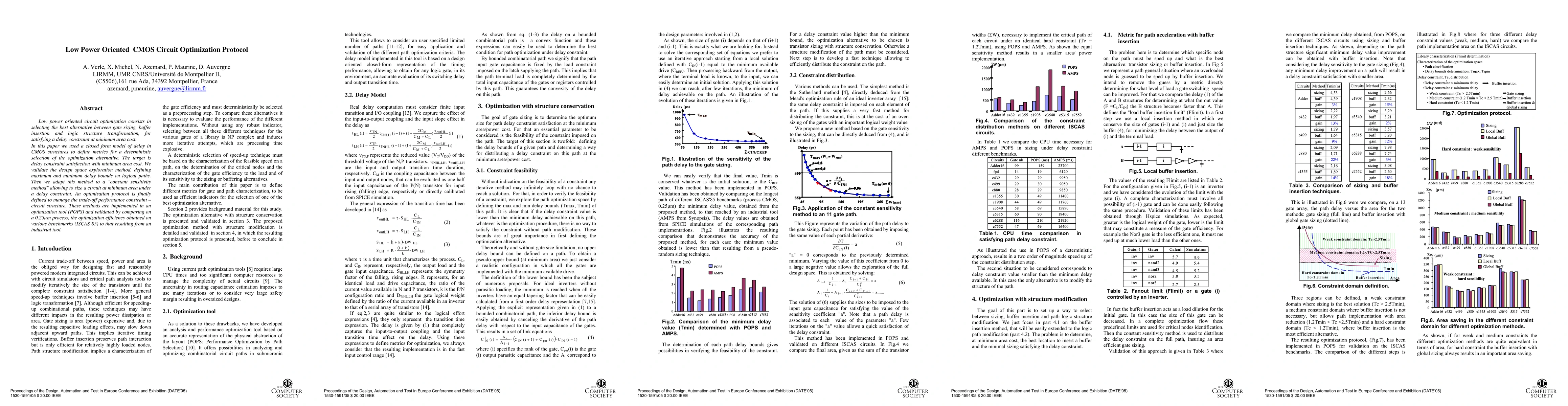 Researchers developed a protocol to optimize CMOS circuits for low power consumption while satisfying delay constraints, using a closed-form model of delay and implementing it in an optimization tool.