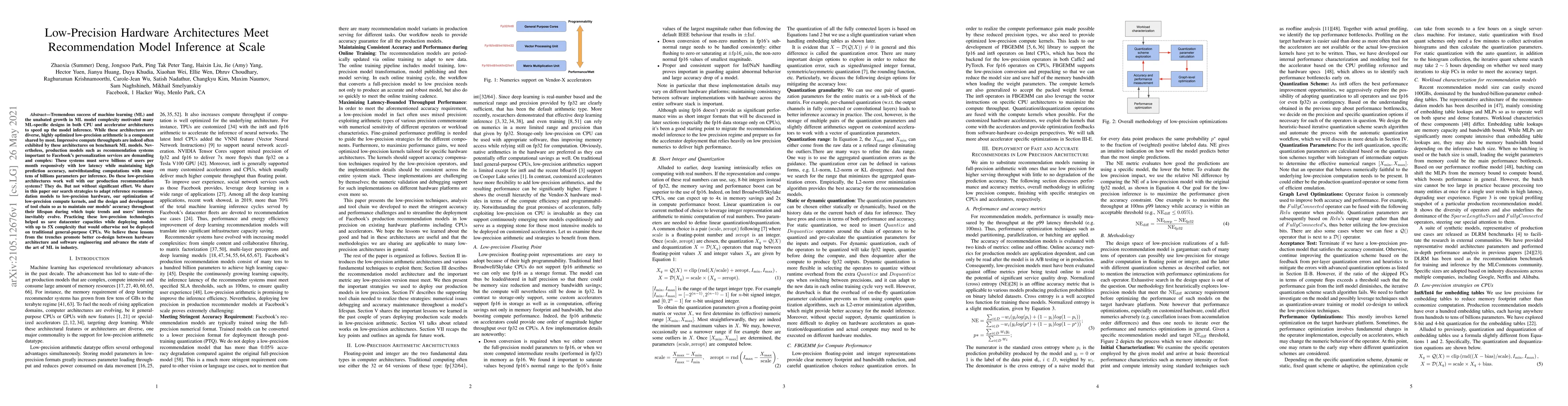 This research is significant as it demonstrates successful deployment of complex, large-scale recommendation models on low-precision hardware architectures, leading to substantial datacenter capacity savings and enabling the use of models with up to 5X greater complexity.
