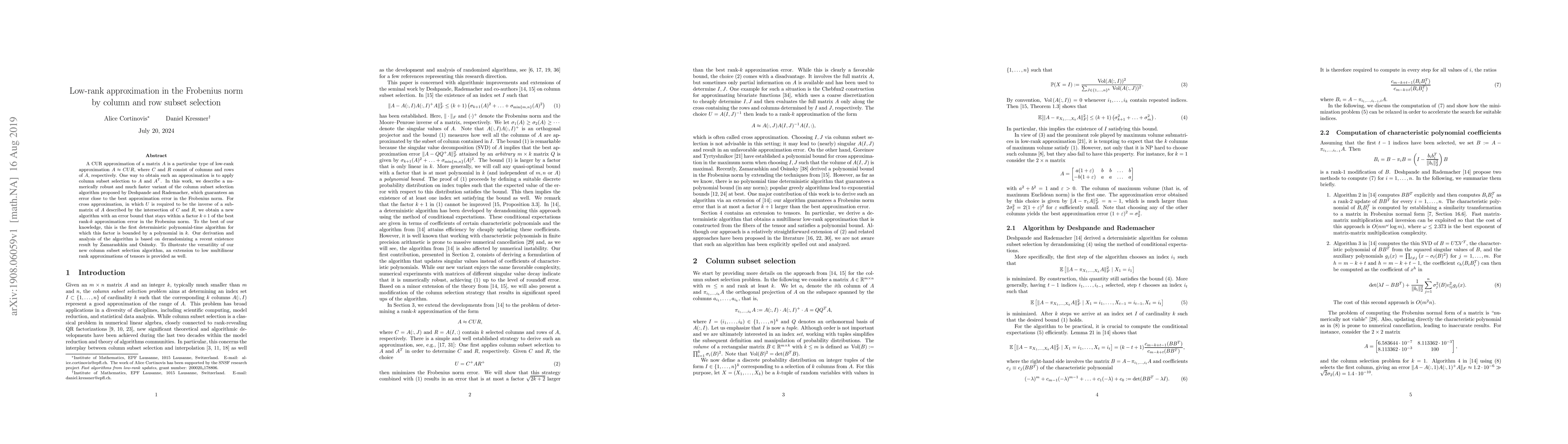 This paper presents a faster and more numerically robust variant of the column subset selection algorithm for CUR approximation, achieving near-optimal error bounds in the Frobenius norm. It also introduces a new algorithm for cross approximation with a polynomial-time complexity, marking the first deterministic approach with a bounded error factor.