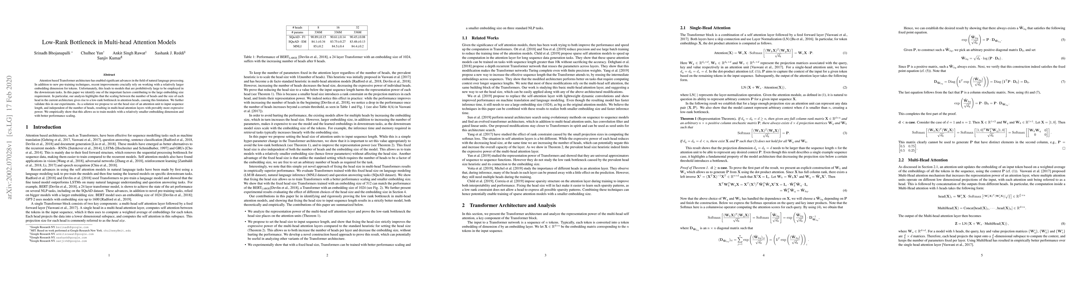 This paper identifies a low-rank bottleneck in multi-head attention models due to the scaling between the number of heads and their size, leading to large embedding dimensions. The authors propose setting the head size to the input sequence length, independent of the number of heads, to enhance expressive power and achieve better performance with smaller embedding dimensions.