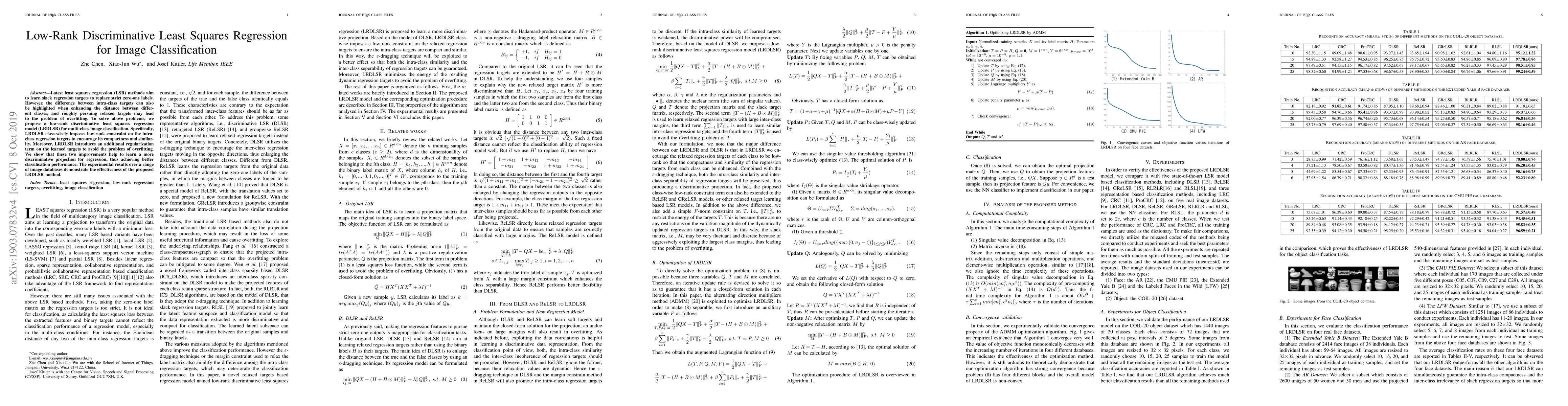 The paper proposes a low-rank discriminative least squares regression model (LRDLSR) to enhance multi-class image classification by imposing low-rank constraints on intra-class regression targets and adding regularization to avoid overfitting, leading to improved classification performance. Experimental results show the effectiveness of the proposed method across various image datasets.