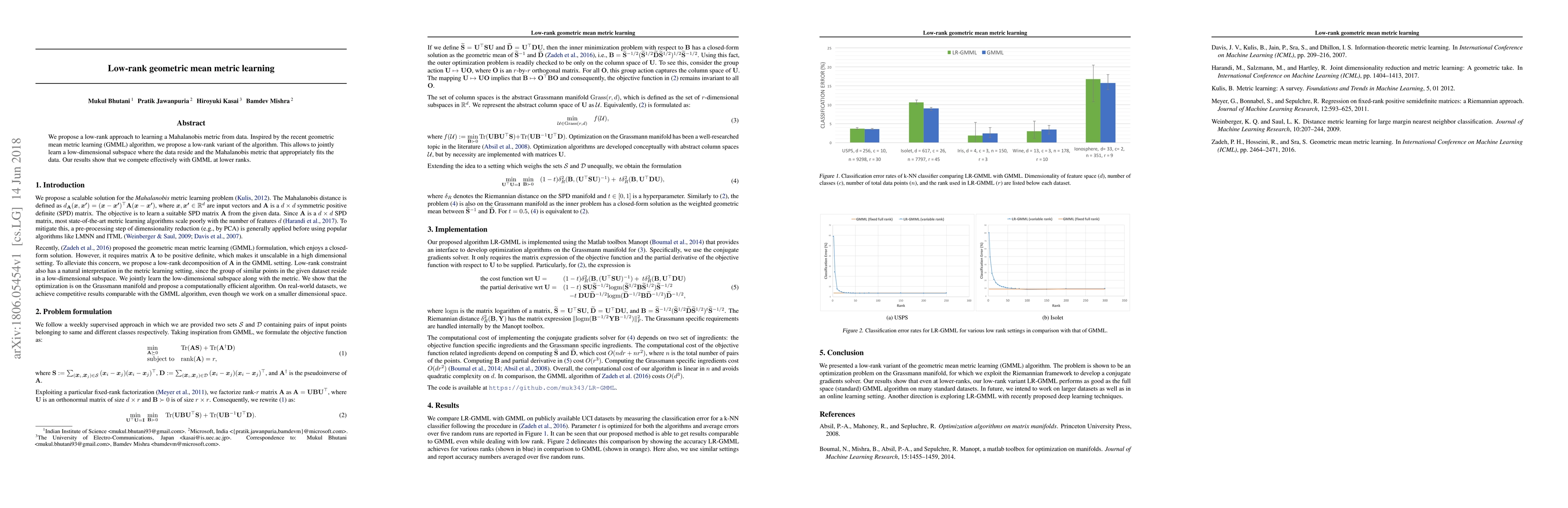 Researchers propose a low-rank approach to learning a Mahalanobis metric from data, competing effectively with existing geometric mean metric learning algorithms at lower ranks.