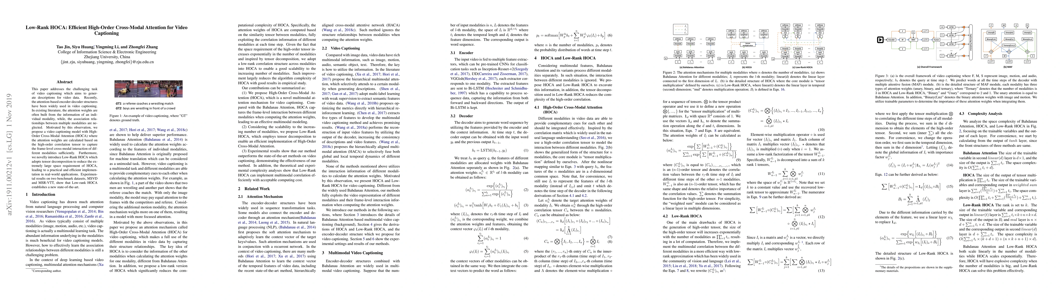 This paper proposes a Low-Rank High-Order Cross-Modal Attention (HOCA) model for video captioning, utilizing high-order correlation tensors to capture cross-modal interactions, and tensor decomposition to reduce computational demands, achieving state-of-the-art performance on MSVD and MSR-VTT datasets.