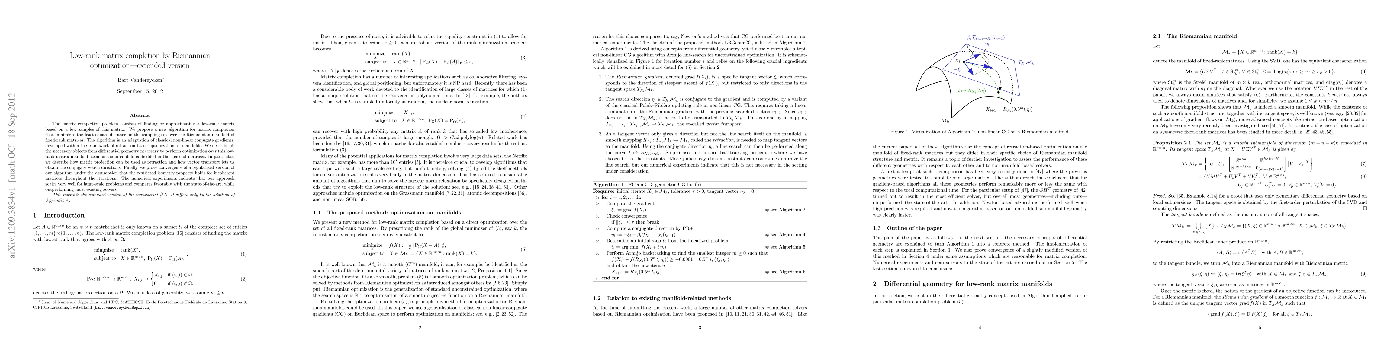 This paper proposes a new Riemannian optimization algorithm for low-rank matrix completion, adapting classical non-linear conjugate gradients on the manifold of fixed-rank matrices. The algorithm demonstrates strong performance in large-scale problems, outperforming existing solvers and scaling well, as shown by numerical experiments.