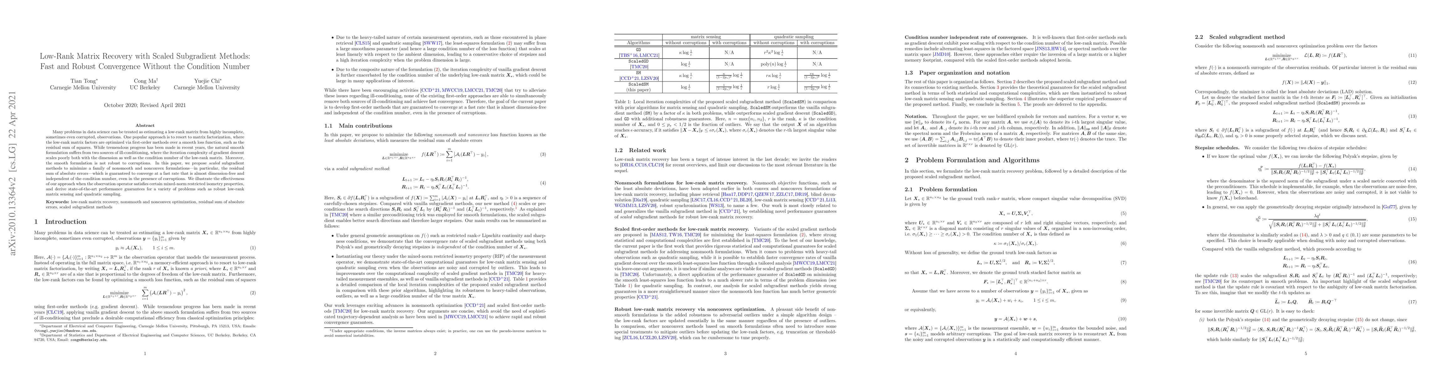 This paper proposes scaled subgradient methods for low-rank matrix recovery that minimize nonsmooth, nonconvex formulations, achieving fast and robust convergence independent of the matrix's condition number, even under corruptions. The approach demonstrates state-of-the-art performance for problems like robust low-rank matrix sensing.